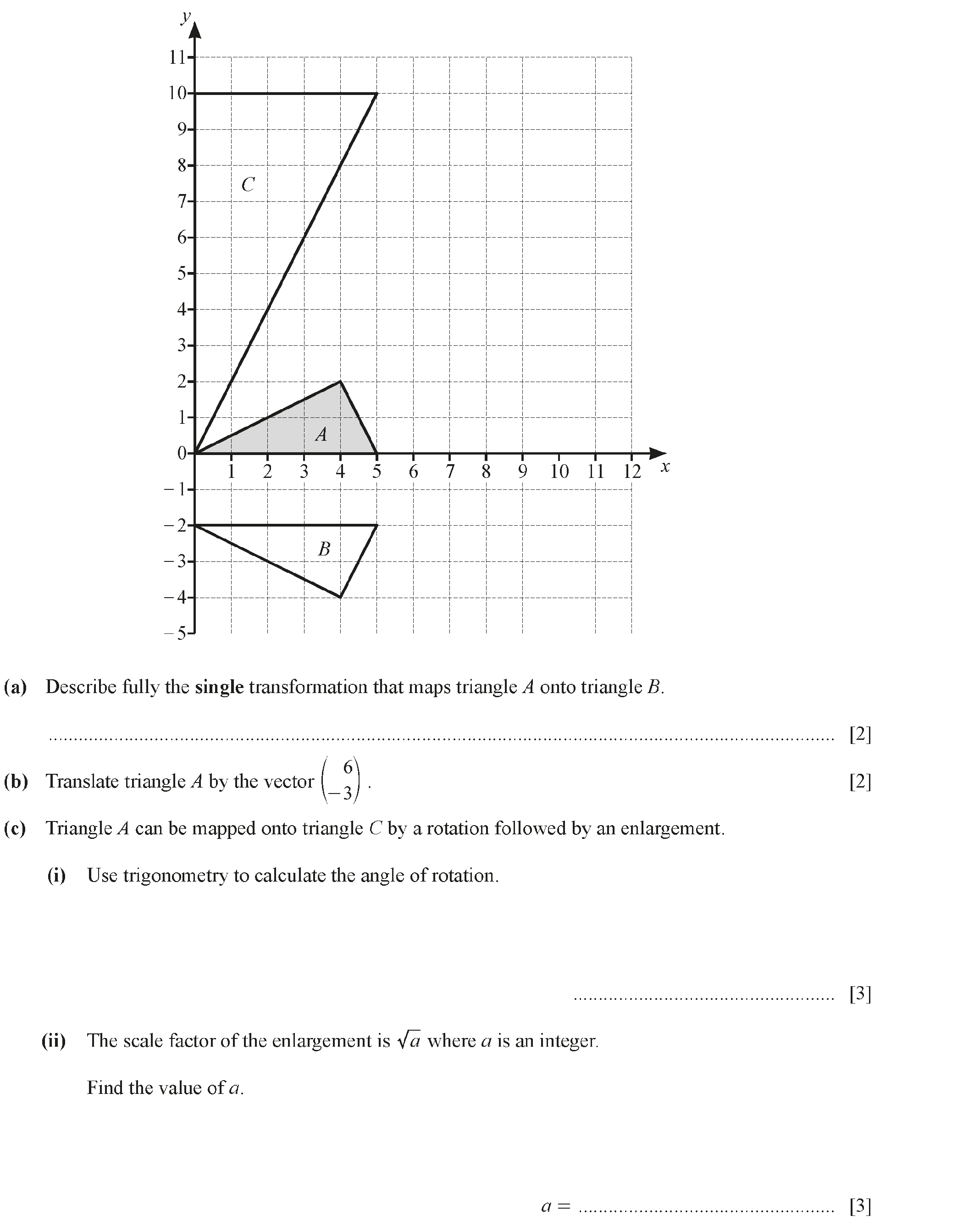 (a) Describe fully the single transformation that maps triangle A onto triangle B.Answer(a) .............................................................
