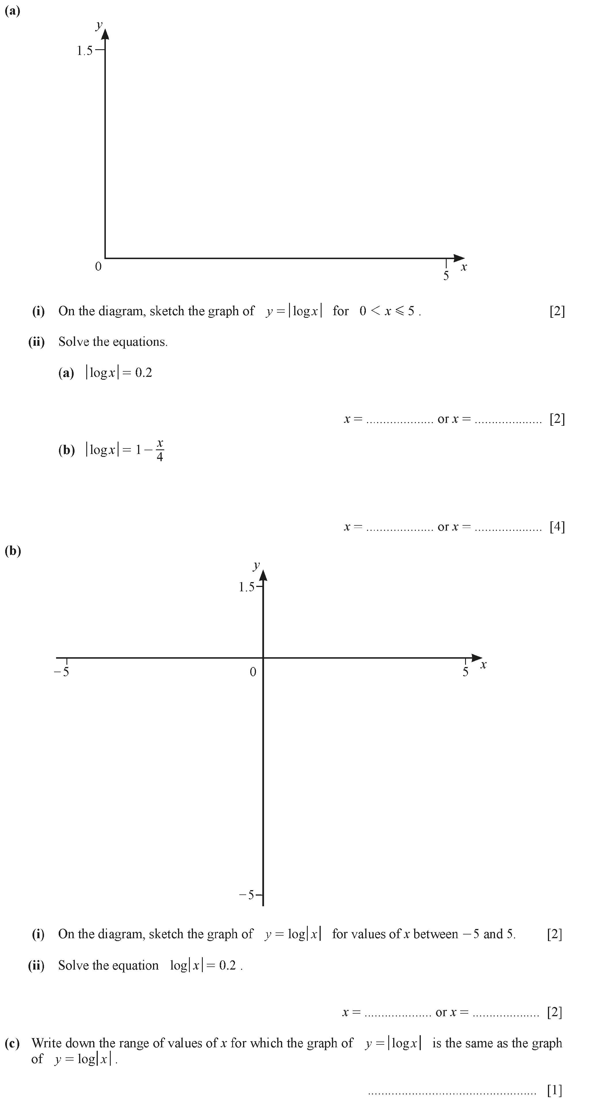 (a) $2 \log 3 = \log k$Find the value of $k$.$k =$ ............................................................ [1](b) $\log 5 - \log 2 = \log p$Find ...