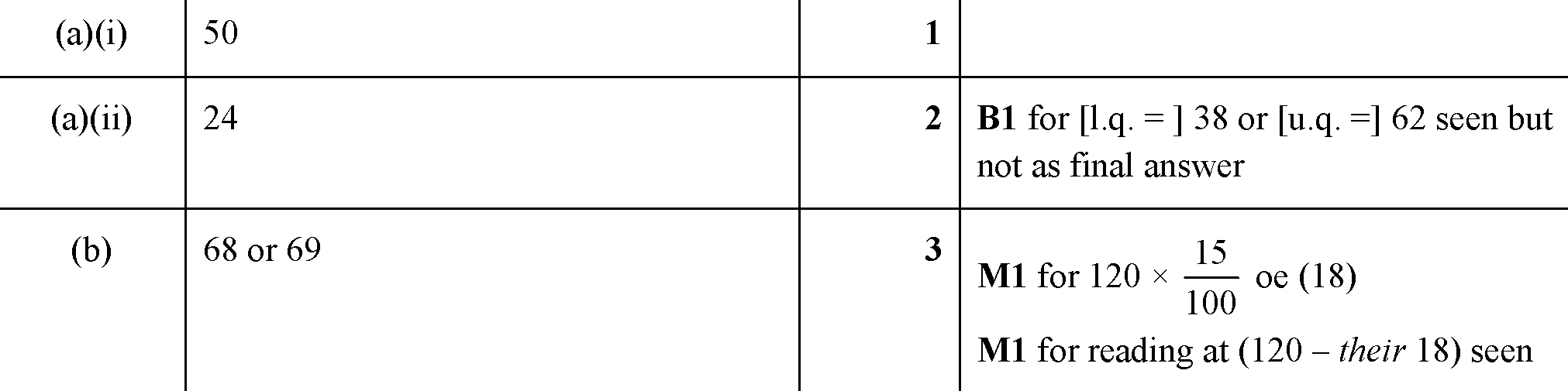 The number of matches in each of 140 matchboxes are counted. The table shows the results.[Table_1](a) Write down the modal number of matches. ...........