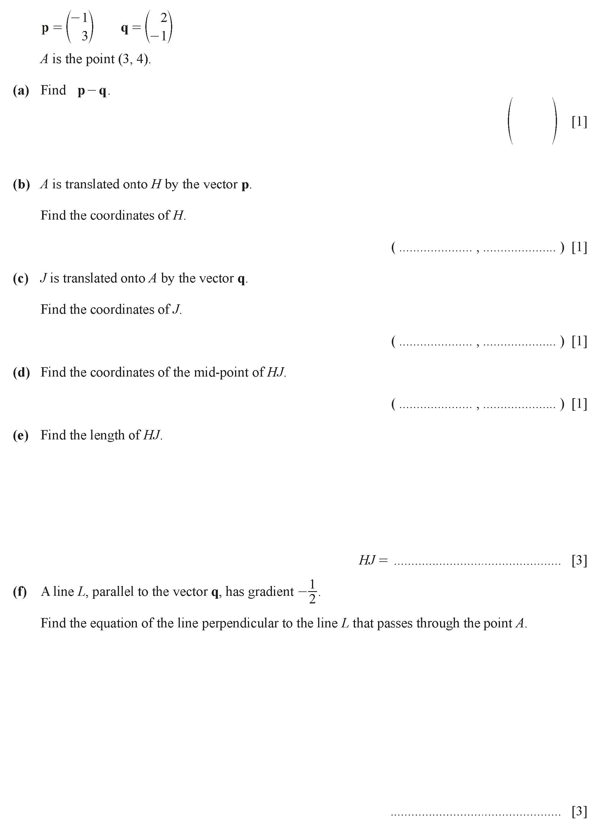 (a) \[ \mathbf{p} = \begin{pmatrix} 2 \\ 3 \end{pmatrix}, \quad \mathbf{q} = \begin{pmatrix} 14 \\ 8 \end{pmatrix} \] (i) Find $2 \mathbf{p} + 3 \math...