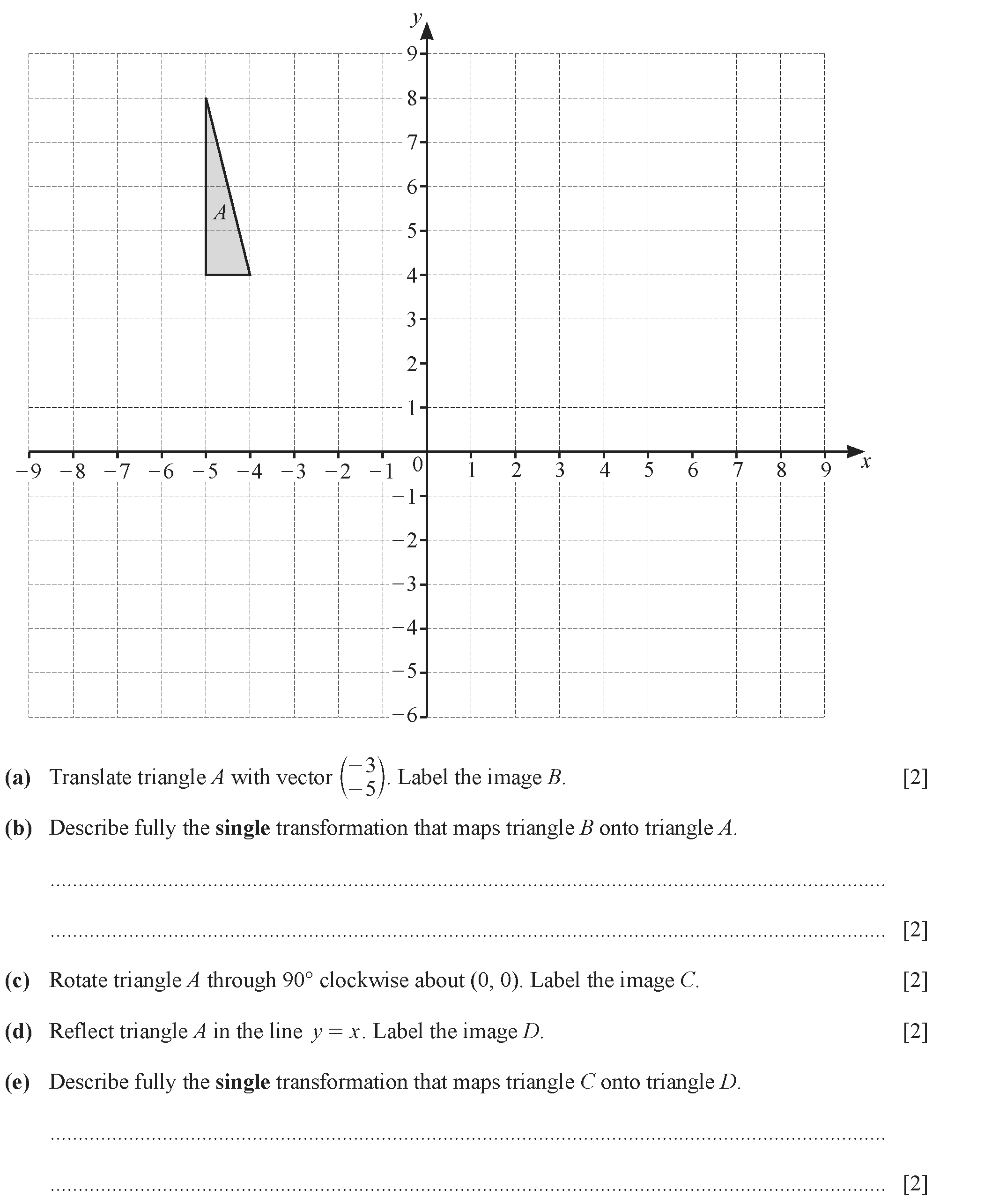 (a) Describe fully the single transformation that maps triangle A onto triangle B.Answer(a) .............................................................
