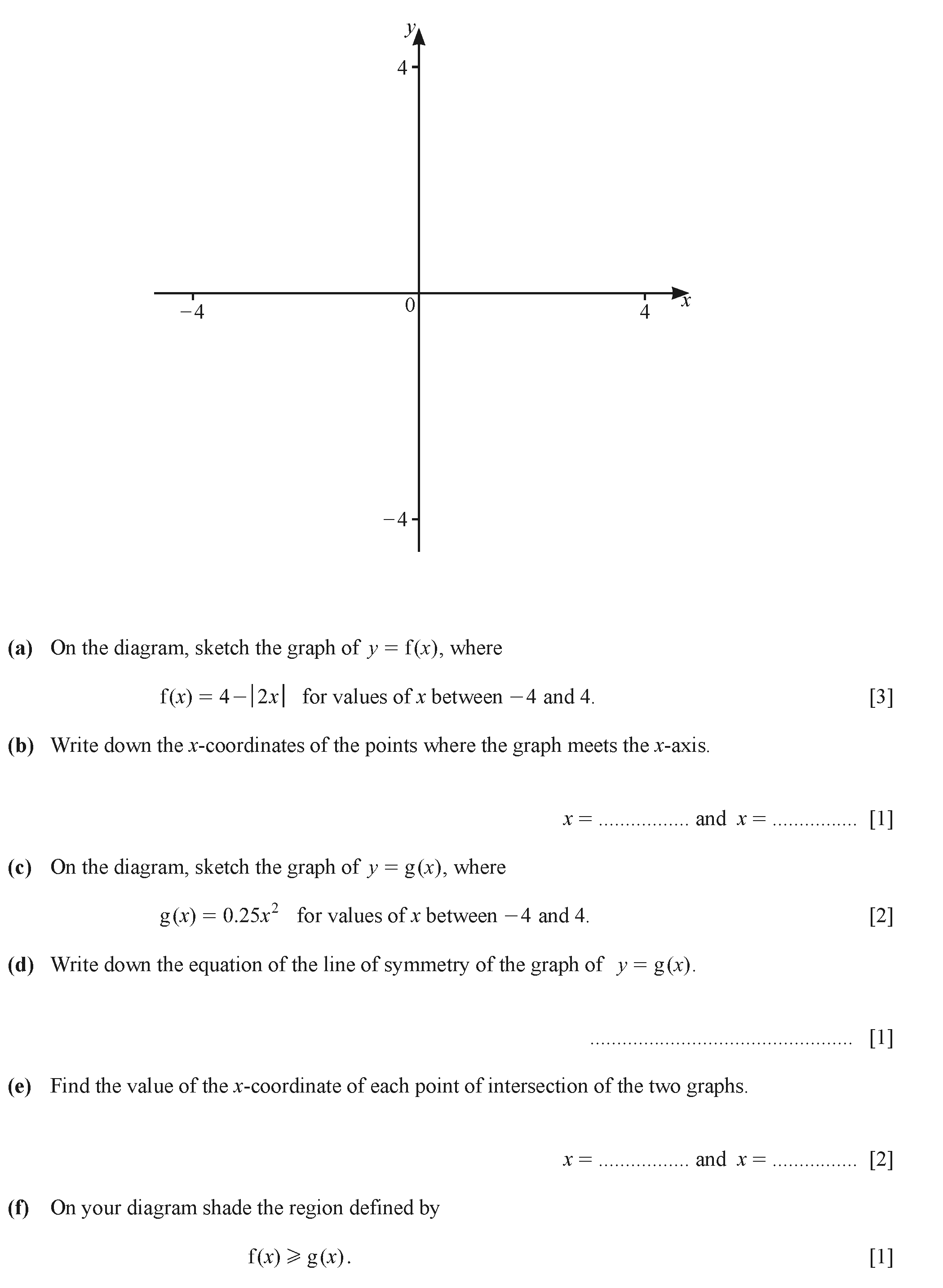 (a) On the diagram, sketch the graph of $y = f(x)$ for values of $x$ between -4 and 4. [2](b) Find the zeros of $f(x)$...................................