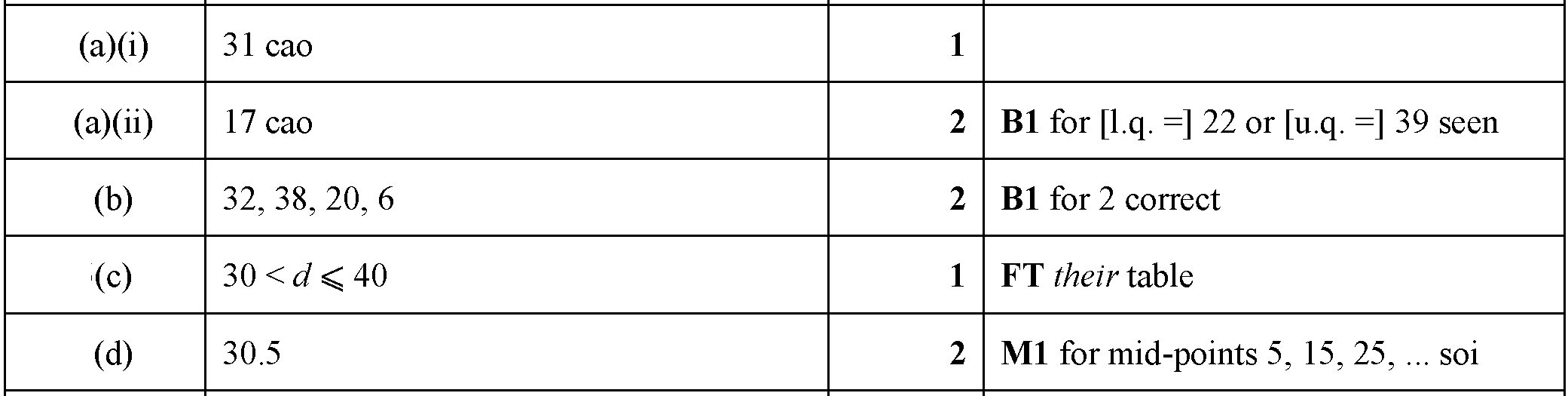 The number of matches in each of 140 matchboxes are counted. The table shows the results.[Table_1](a) Write down the modal number of matches. ...........