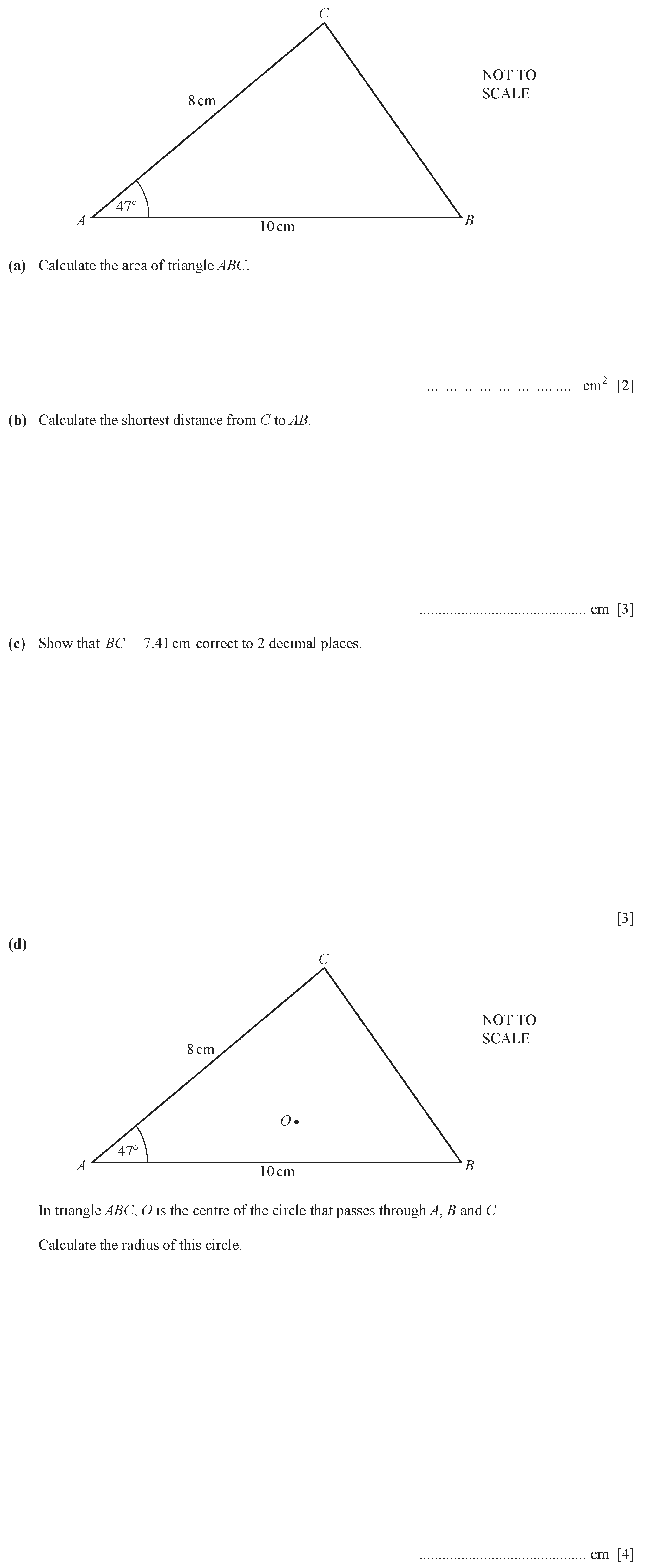 Calculate (a) $BC$, Answer(a) ............................................................. cm [2] (b) angle $CAD$, Answer(b) .......................
