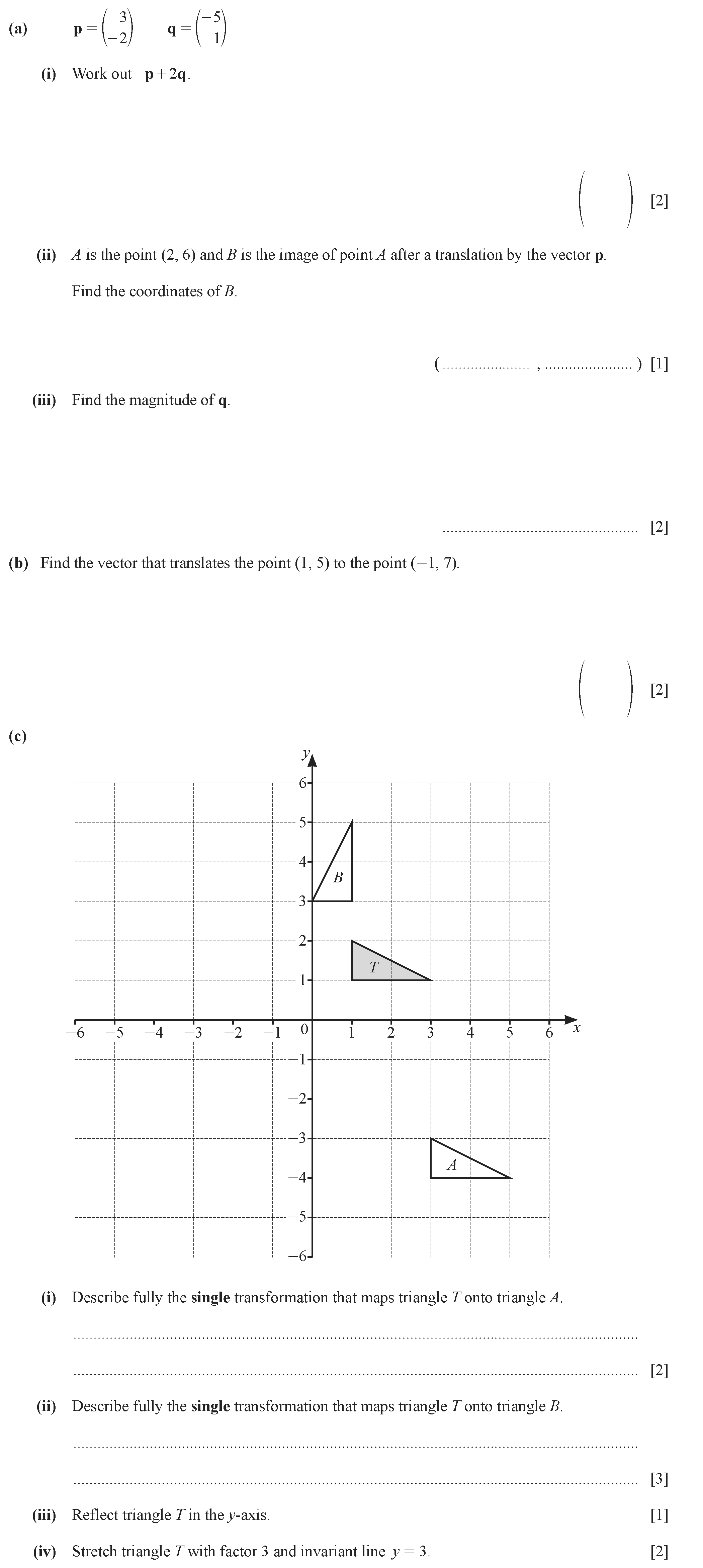 (a) Describe fully the single transformation that maps triangle A onto triangle B.Answer(a) .............................................................