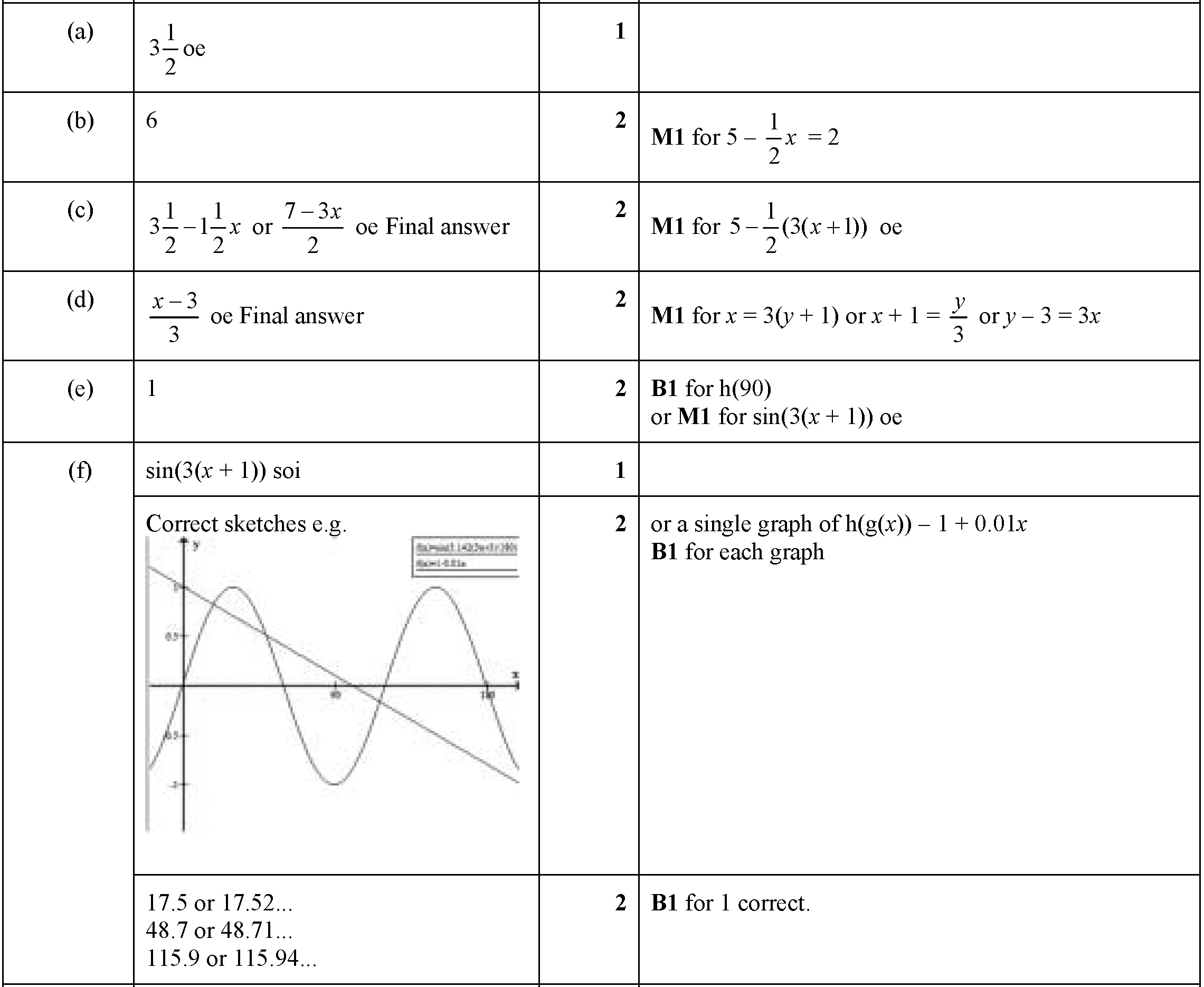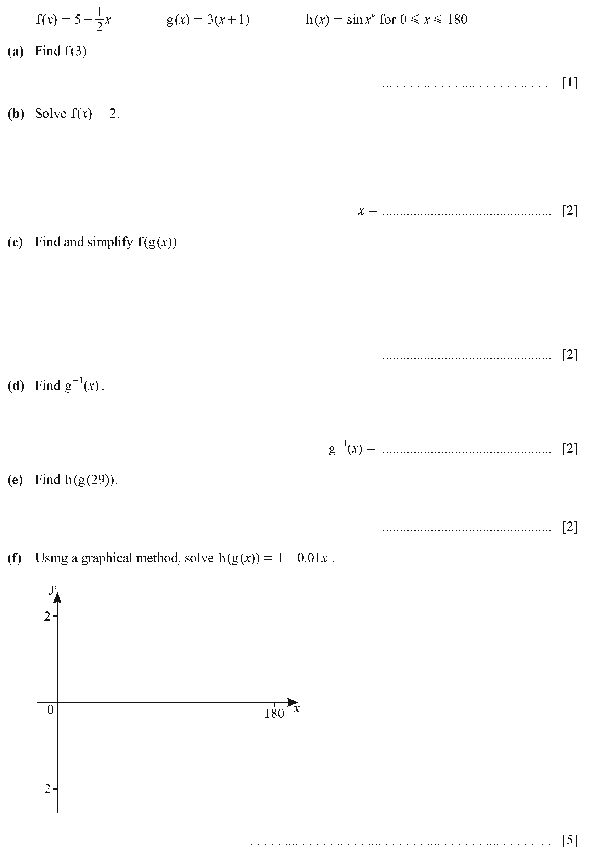(a) Solve the equations.(i) $3x - 2 = -14$ $x = \text{..............................................}$ [2](ii) $7x + 11 = 26 - 3x$ $x = \text{...........