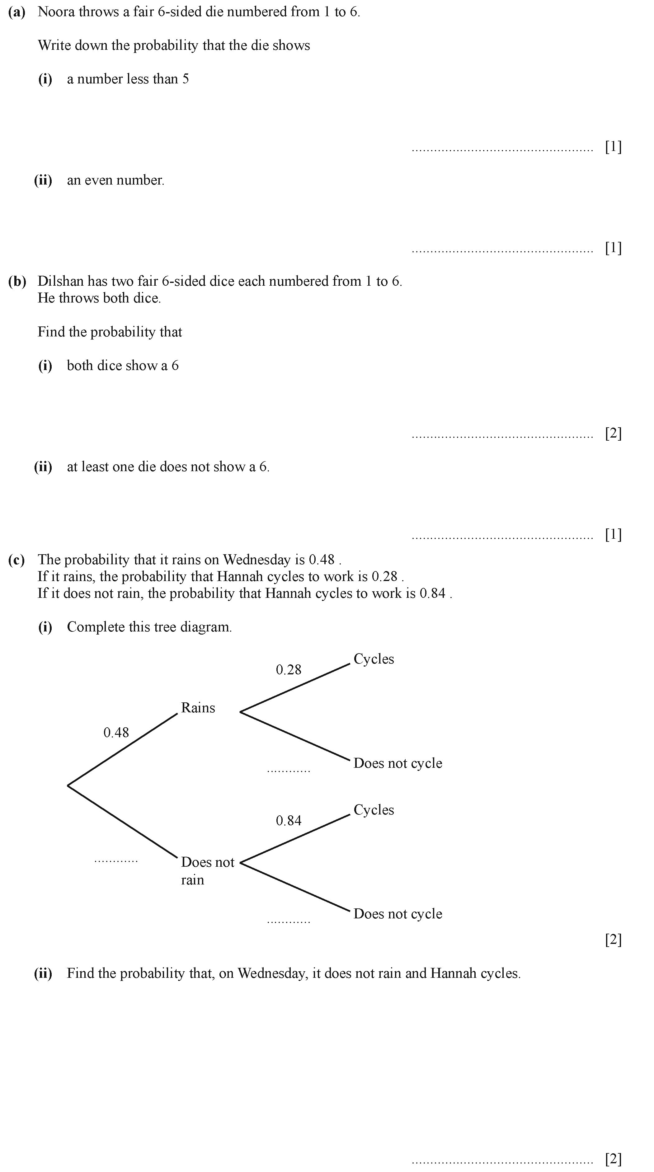 (a) Solve the equations.(i) $3x - 2 = -14$ $x = \text{..............................................}$ [2](ii) $7x + 11 = 26 - 3x$ $x = \text{...........