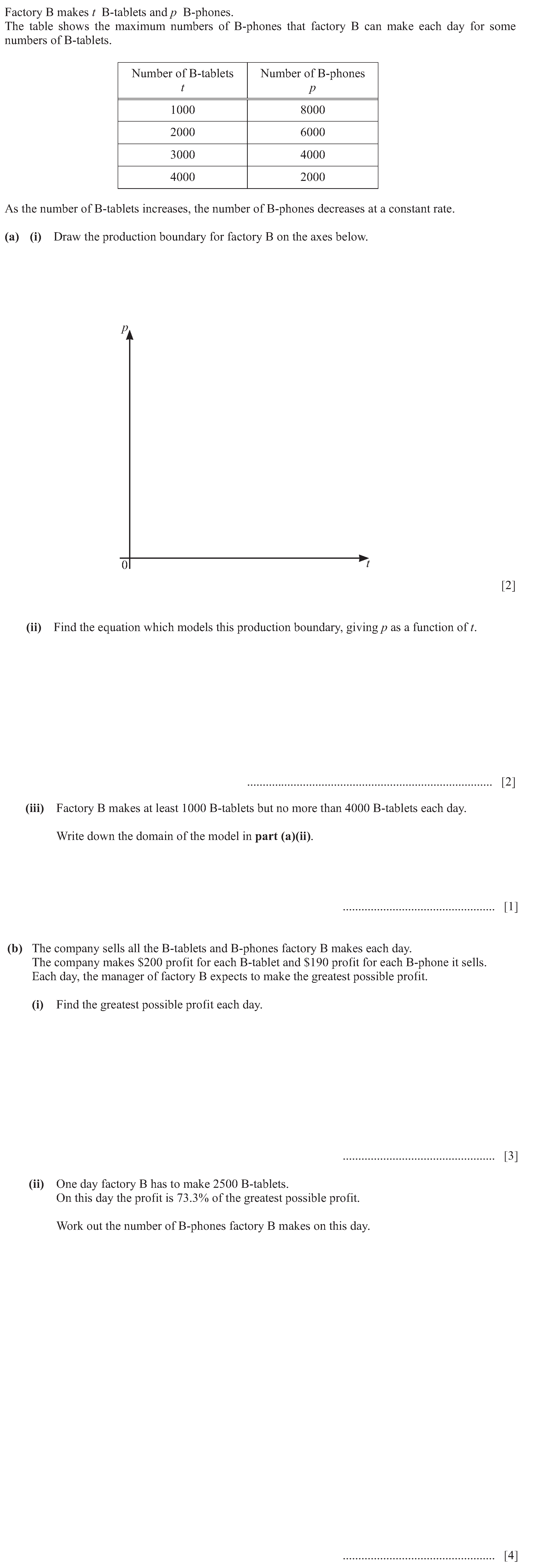 (a) Solve.$$\sin x = \frac{1}{2} \text{ for } 0^\circ \leq x \leq 90^\circ$$$$x = \text{.......................................} \; [1]$$(b) Solve.$$\...