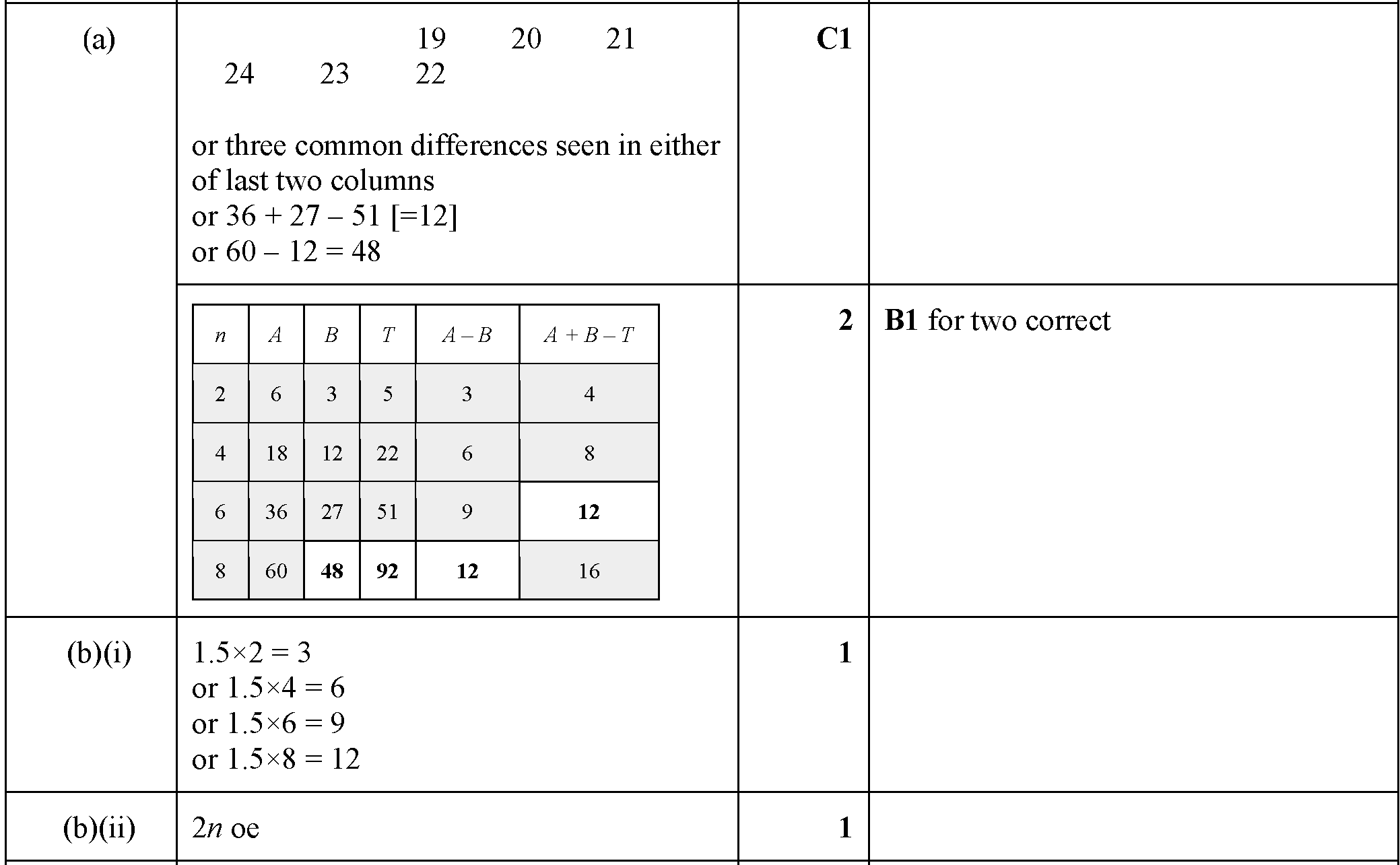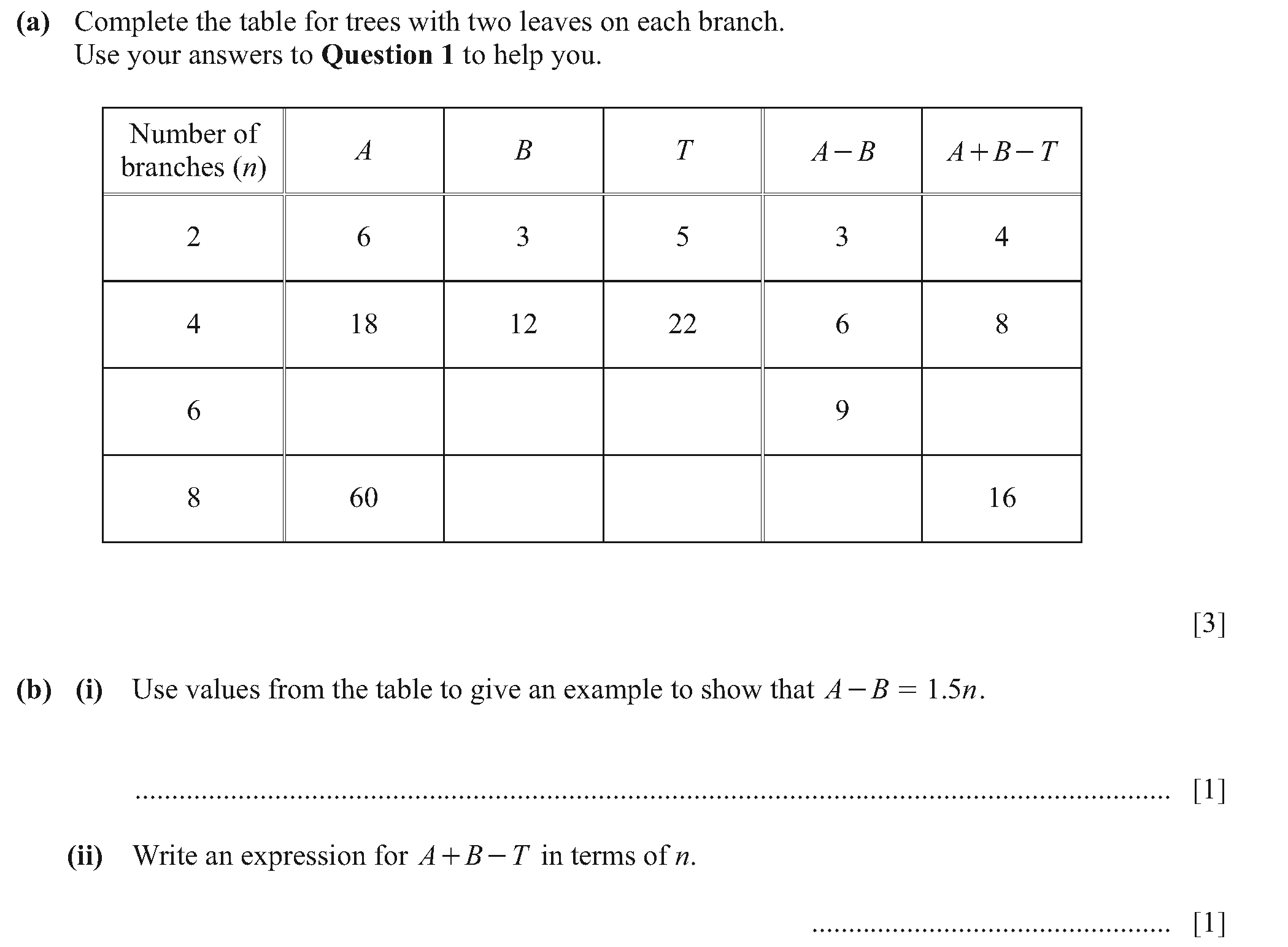 (a) Solve the equations.(i) $3x - 2 = -14$ $x = \text{..............................................}$ [2](ii) $7x + 11 = 26 - 3x$ $x = \text{...........
