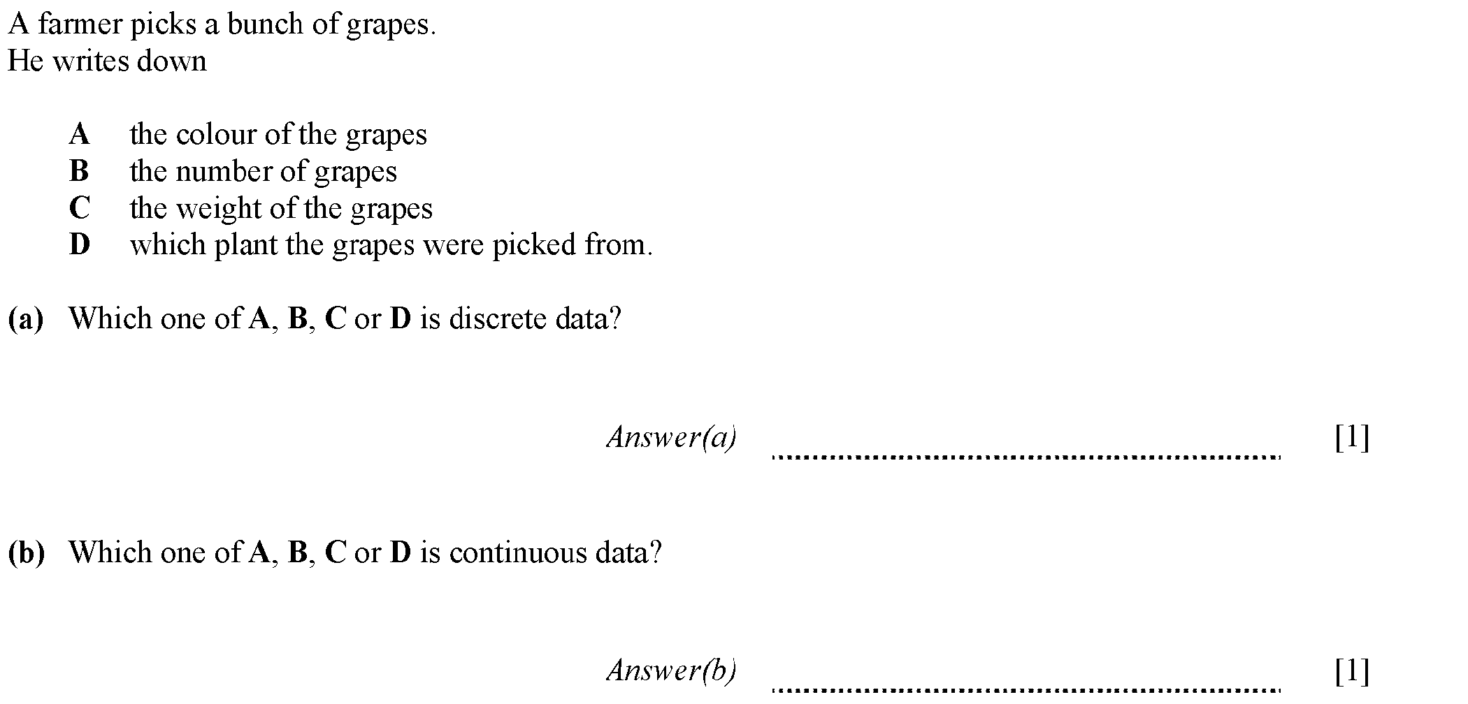 A farmer picks a bunch of grapes.He writes downA the colour of the grapesB the number of grapesC the weight of the grapesD which plant the grapes were...