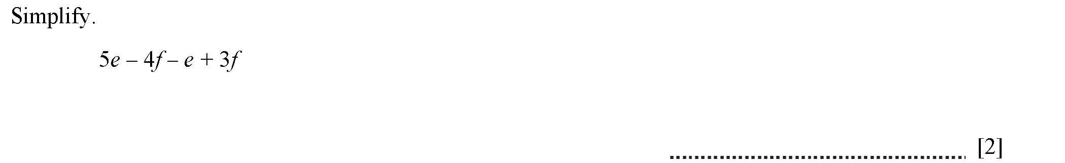 (a) Simplify.(i) $3x - 5 + 2x - 12$Answer(a)(i) ..................................................... [2](ii) $4 \times d \times 2 \times d$Answer(a)(...