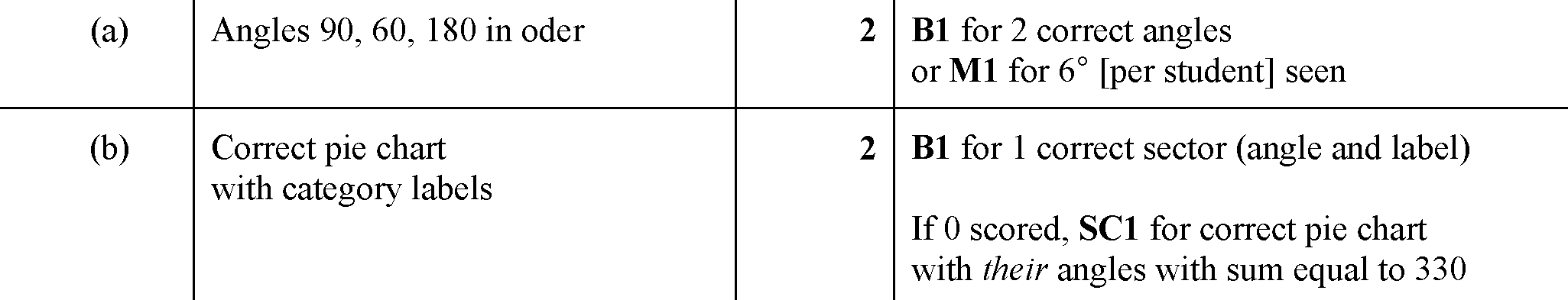 Raphael is drawing a pie chart for the time, $t$ minutes, that 90 students spend on the internet each day.[Table_1](a) Complete the table to show the ...