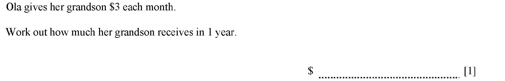 Write down three multiples of 12. ..................., ..................., ................... [1]
