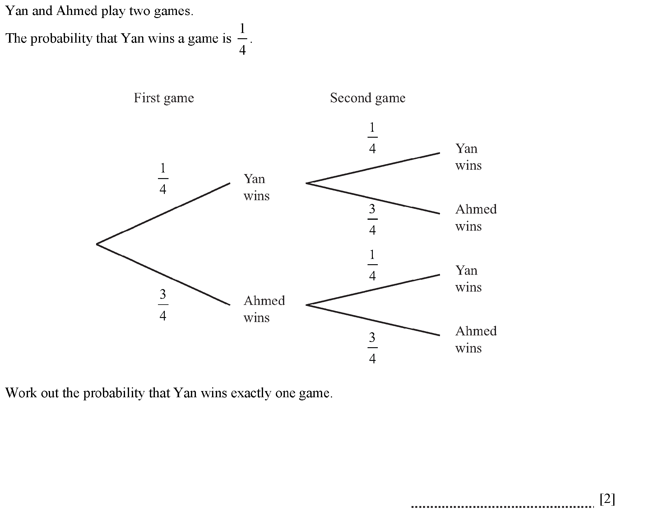 (a) Work out $\frac{3}{8}$ of 16. .......................................................... [1](b) Write $\frac{1}{20}$ as a percentage. ...............