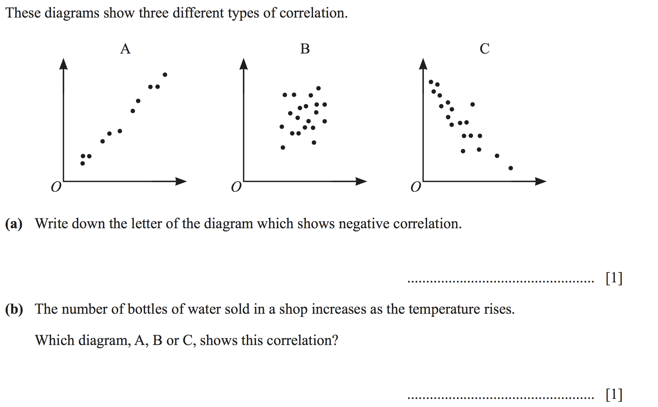 The scatter diagram shows the marks of 10 students in a mathematics test and in a physics test. (a) What type of correlation is shown on the scatt...