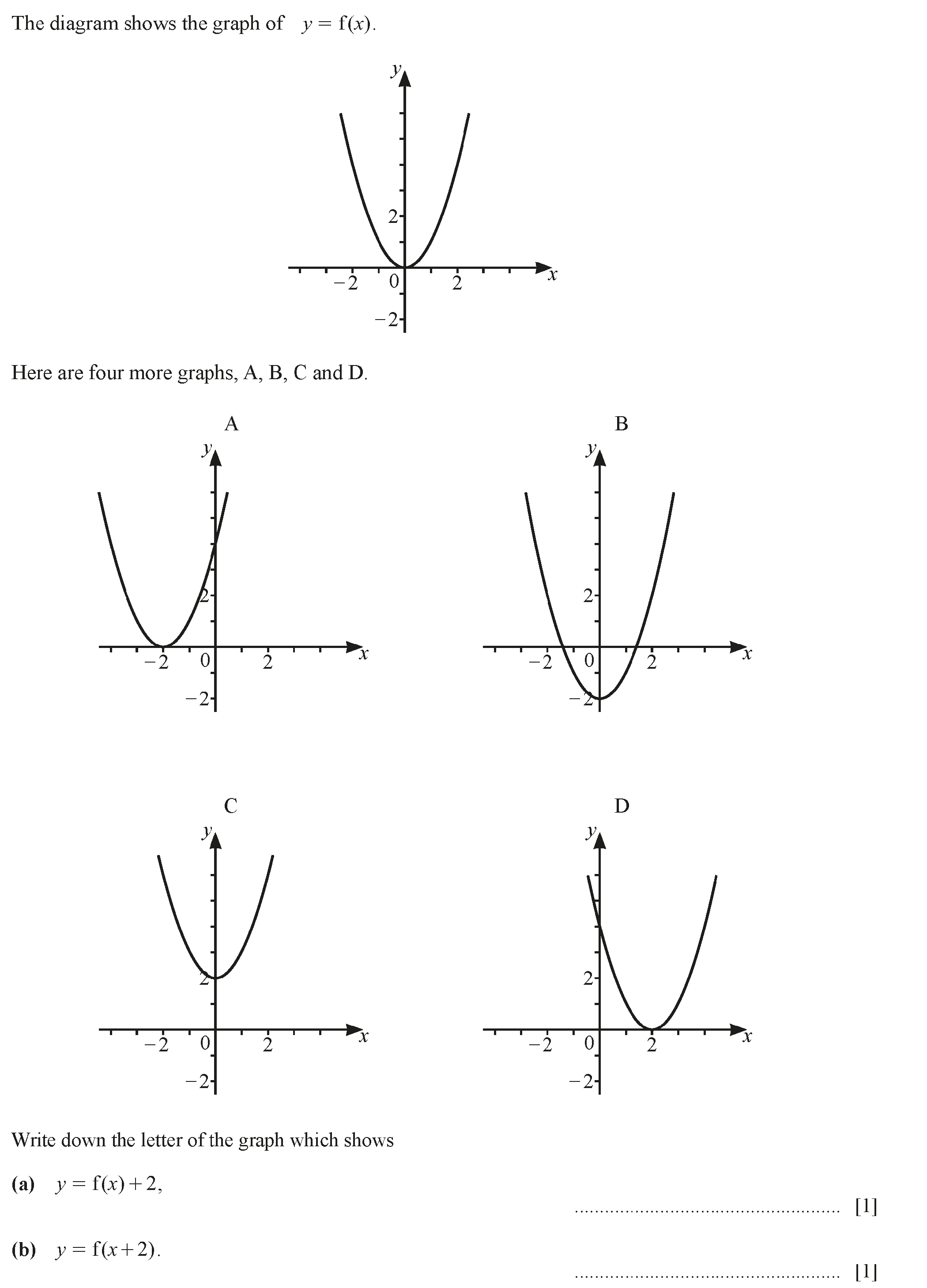 (a) On the diagram, sketch the graph of $y = f(x)$ for $-3 \leq x \leq 1$. [2](b) Write down the $y$ co-ordinate of the point where the graph crosses ...