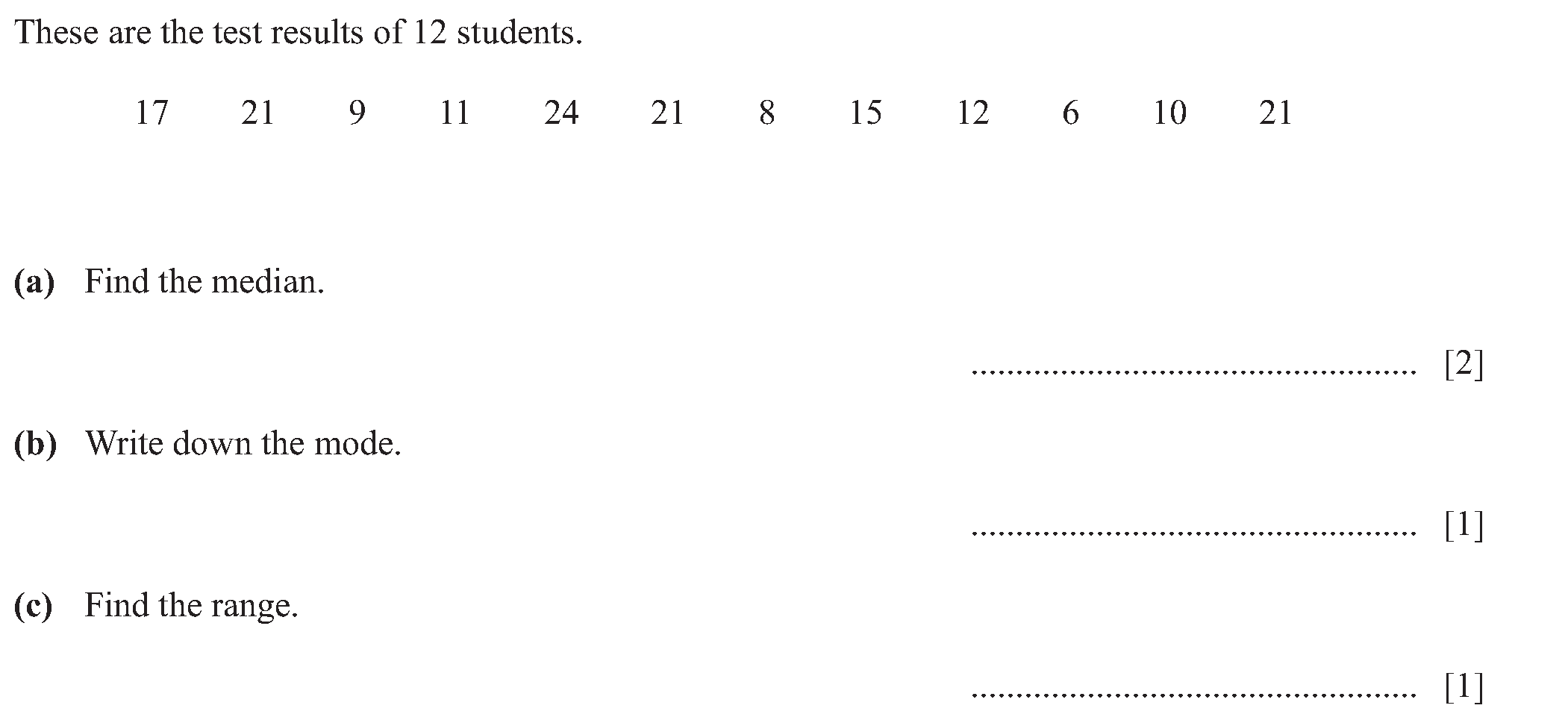 A list of numbers is shown below.5 \ 8 \ 6 \ 2 \ 8 \ 4 \ 5 \ 8(a) For the list of numbers, find(i) the mode,Answer(a)(i) ................................