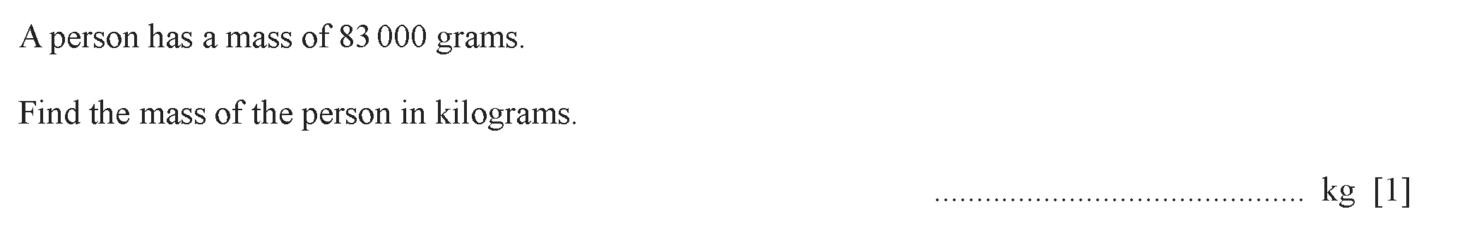 (a) Change 4.3 metres into millimetres. ................................. mm [1] (b) Change 60 hours into days. .................................. ...