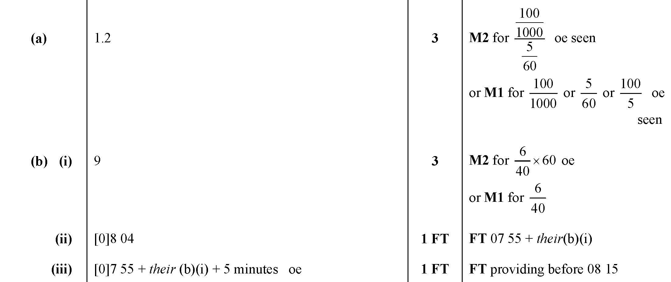 Here is a bus timetable.[Table_1](a) Find how many minutes it takes Bus 4 to travel from A to E.Answer(a) ...............................................