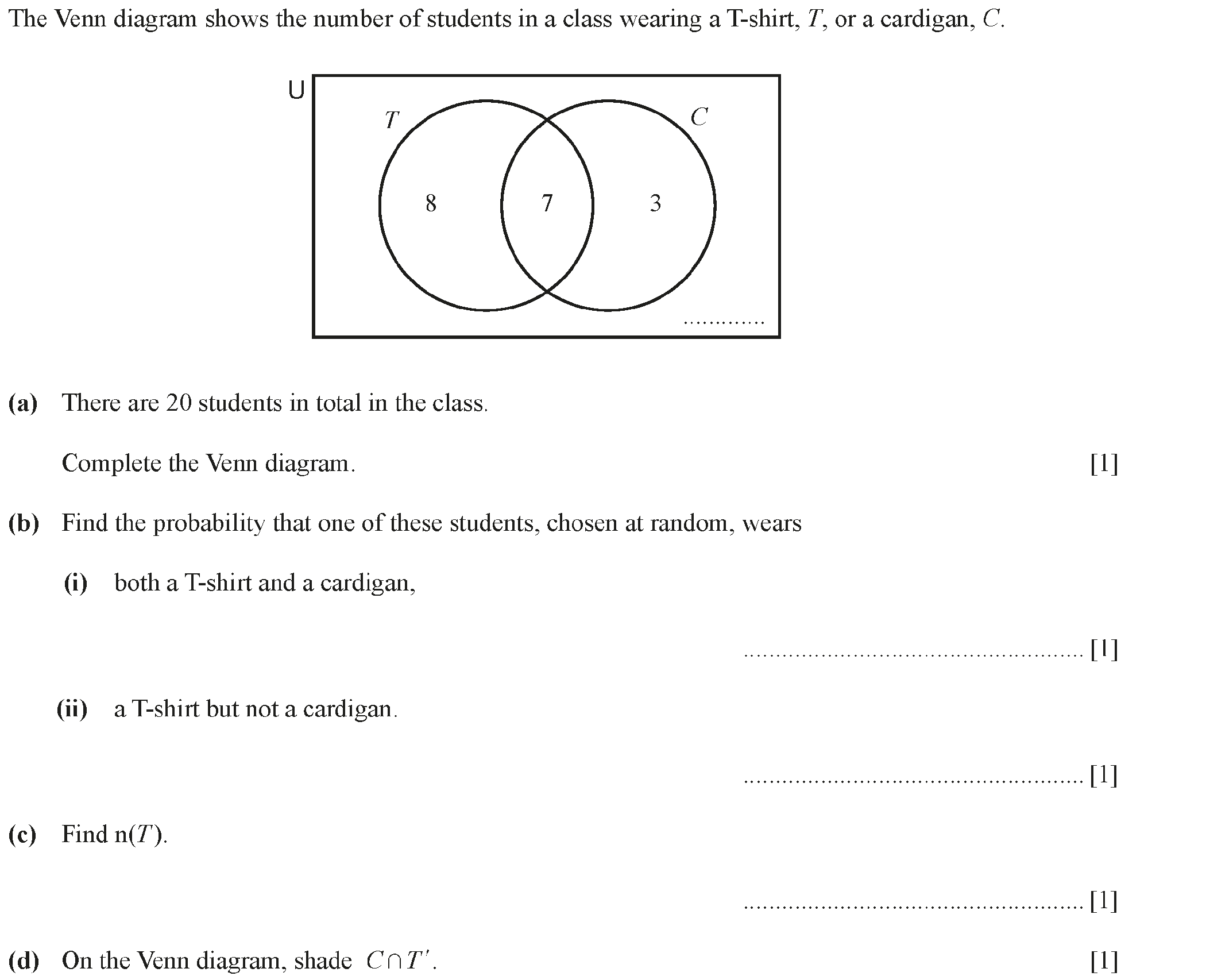 List the elements in each of the following sets.(a) (i) $A$Answer(a)(i) ................................................................. [1](ii) $A \...