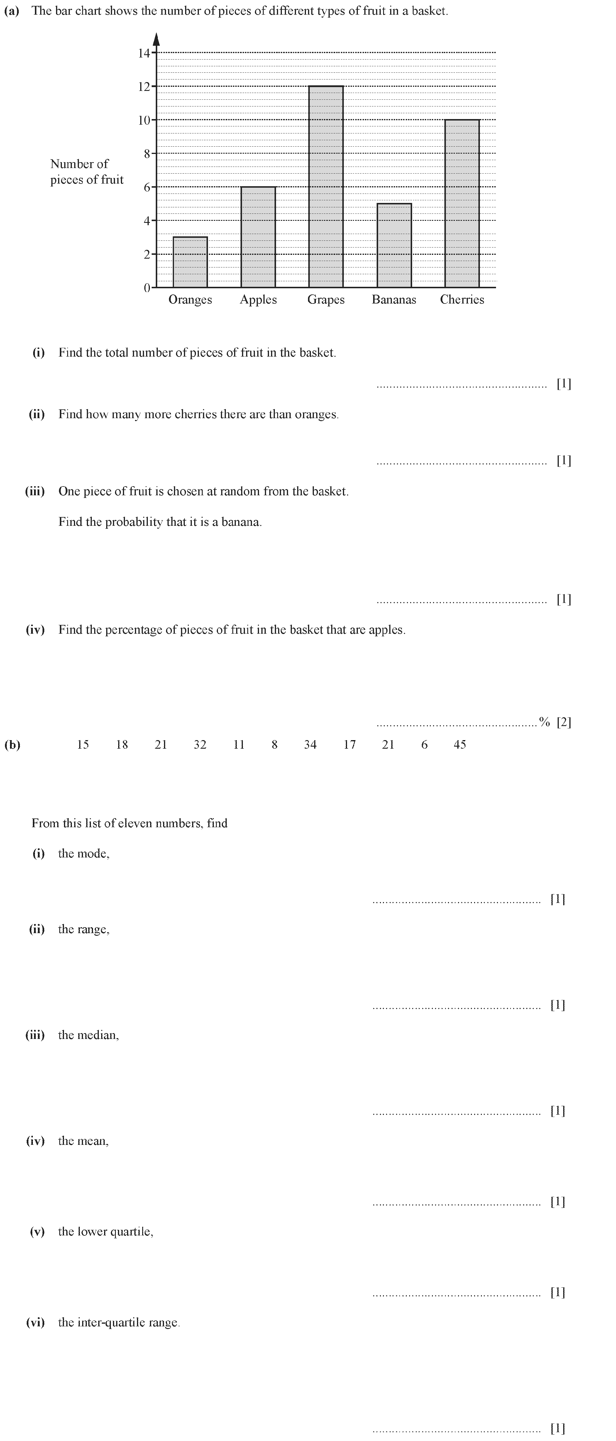 (a) Work out $\frac{3}{8}$ of 16. .......................................................... [1](b) Write $\frac{1}{20}$ as a percentage. ...............