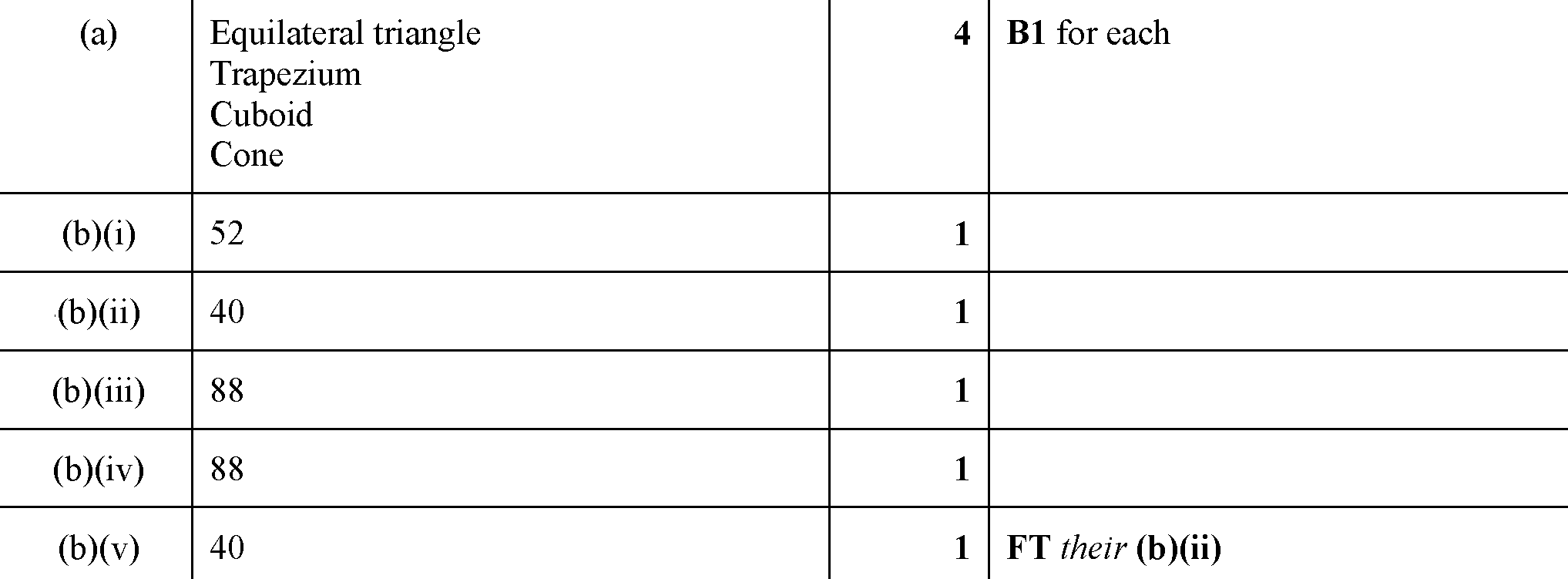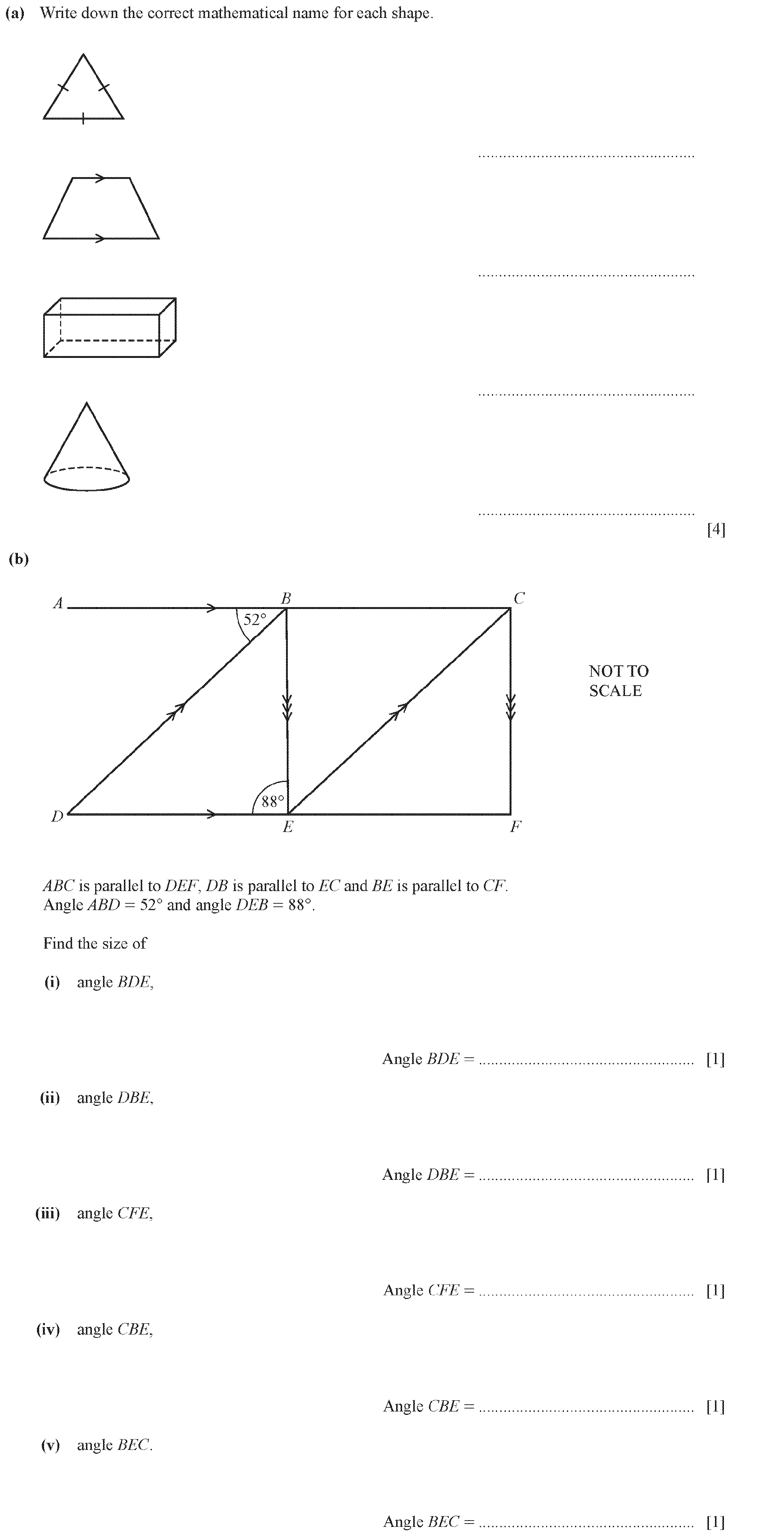 From the list above, write down the mathematical name of each of the following shapes.(a) Answer(a) .....................................................