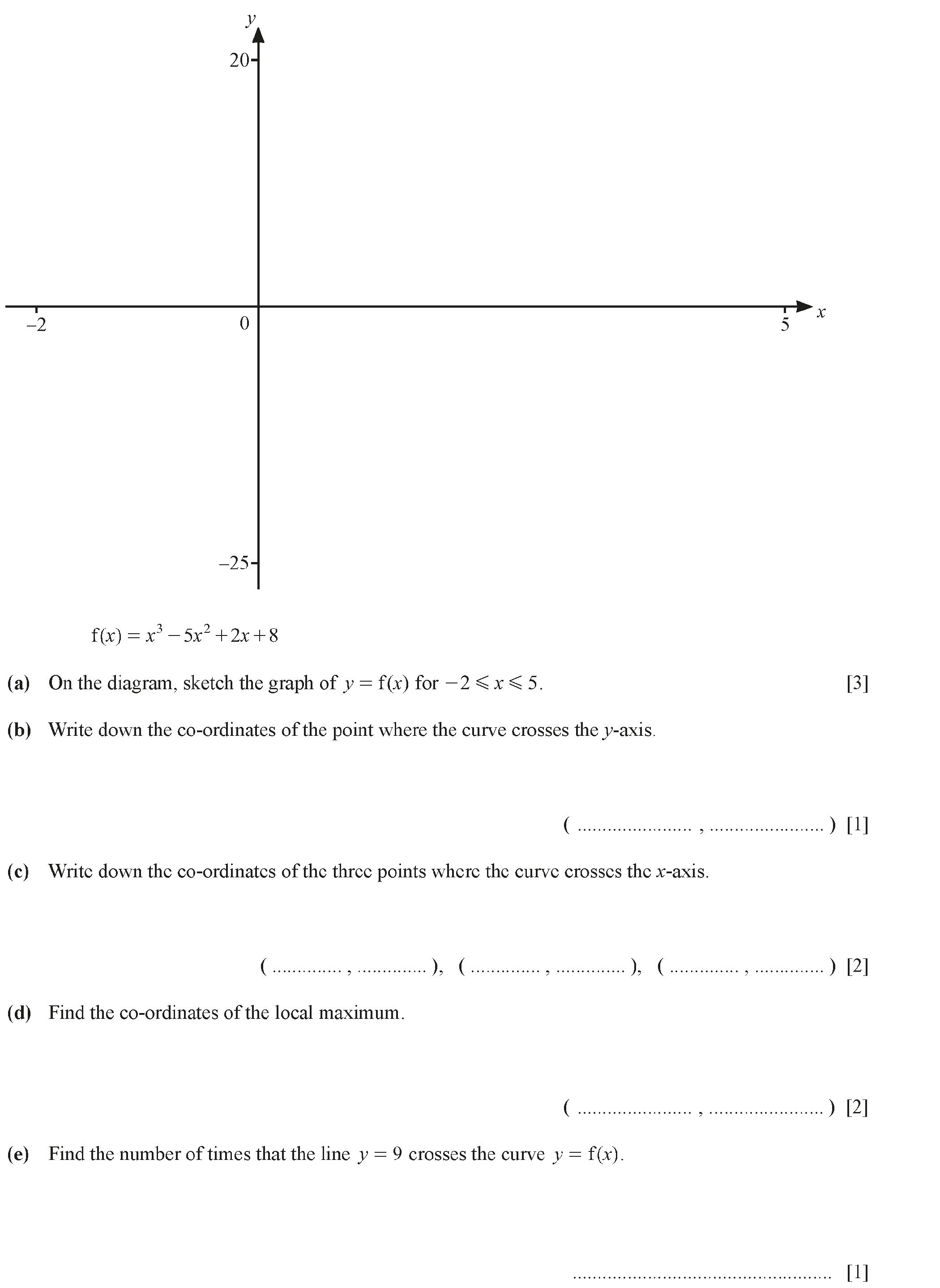 (a) On the diagram, sketch the graph of $y = f(x)$ for $-3 \leq x \leq 1$. [2](b) Write down the $y$ co-ordinate of the point where the graph crosses ...
