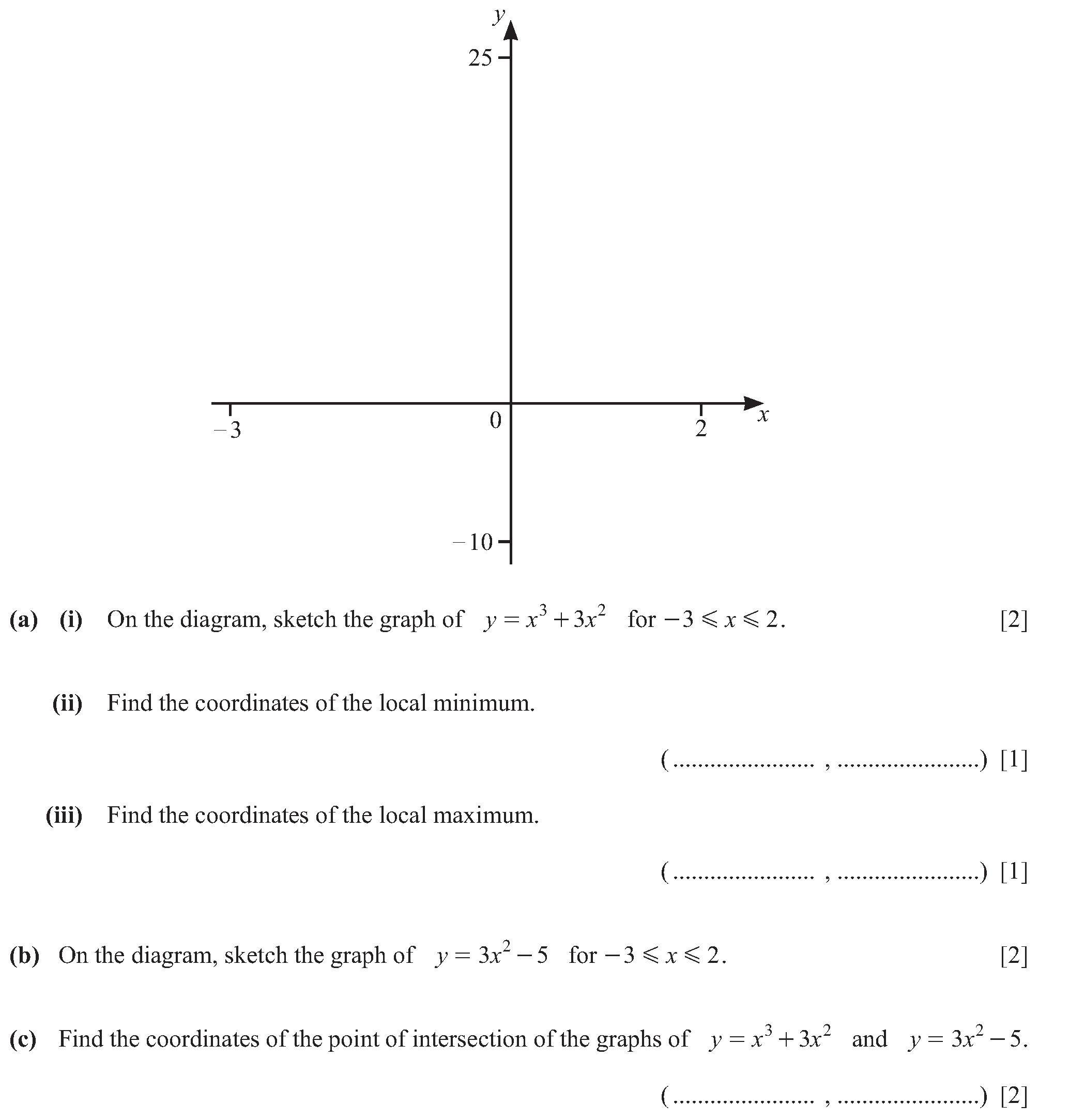 (a) On the diagram, sketch the graph of $y = f(x)$ for $-3 \leq x \leq 1$. [2](b) Write down the $y$ co-ordinate of the point where the graph crosses ...