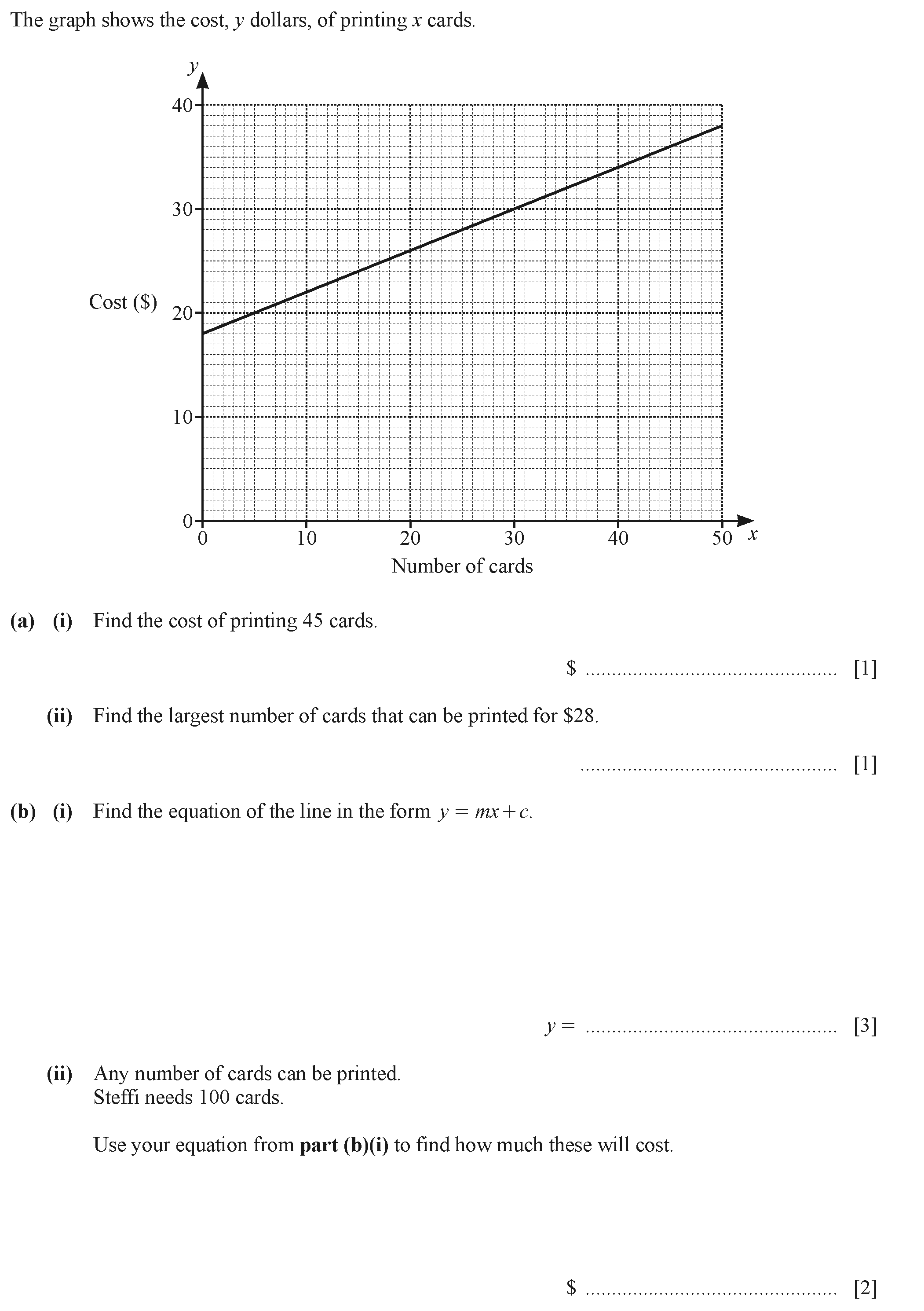 Write down the letter of the diagram that shows(a) $y = -x - 1$,Answer(a) ............................................................ [1](b) $y = 2x ...