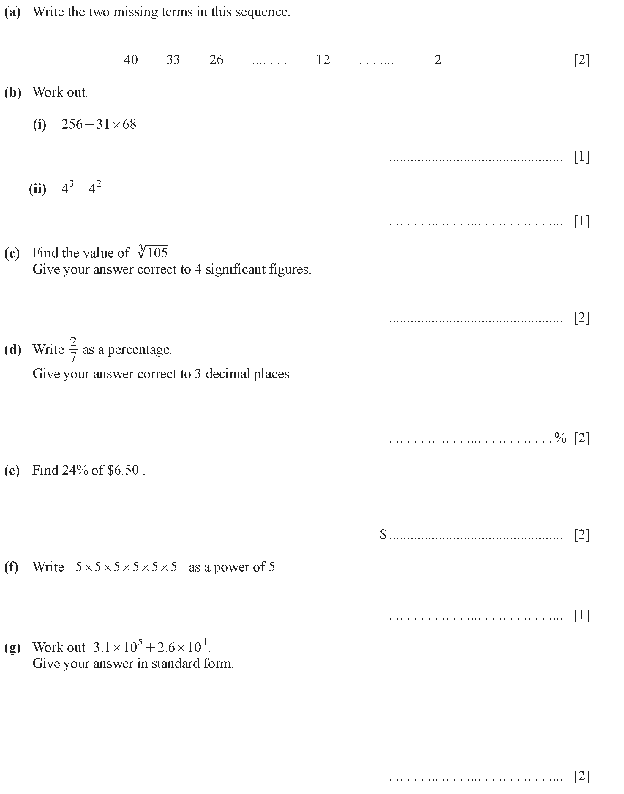 (a) Change 4.3 metres into millimetres. ................................. mm [1] (b) Change 60 hours into days. .................................. ...