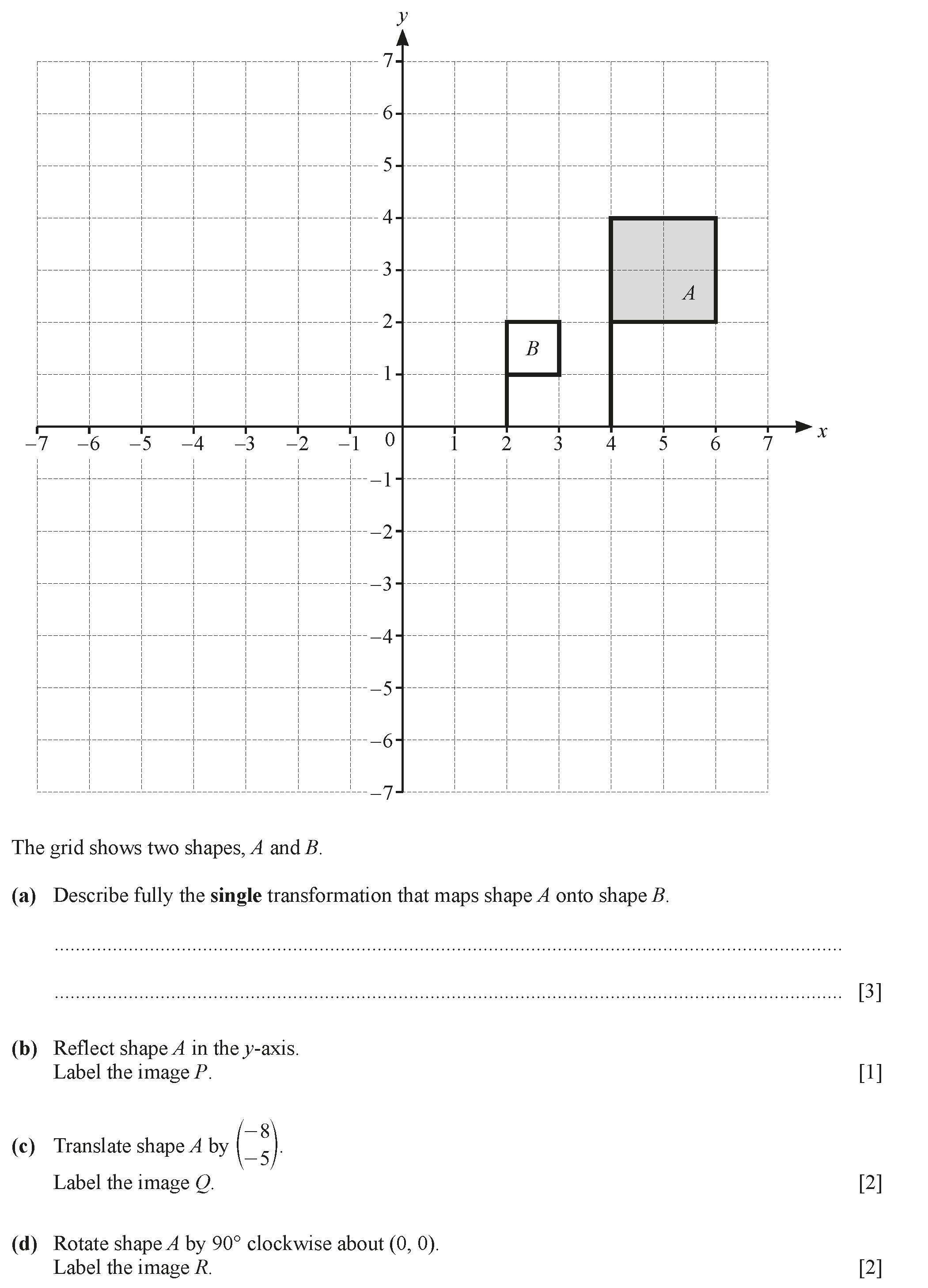 Describe fully the \textit{single} transformation that maps shape $P$ onto shape $Q$.....................................................................