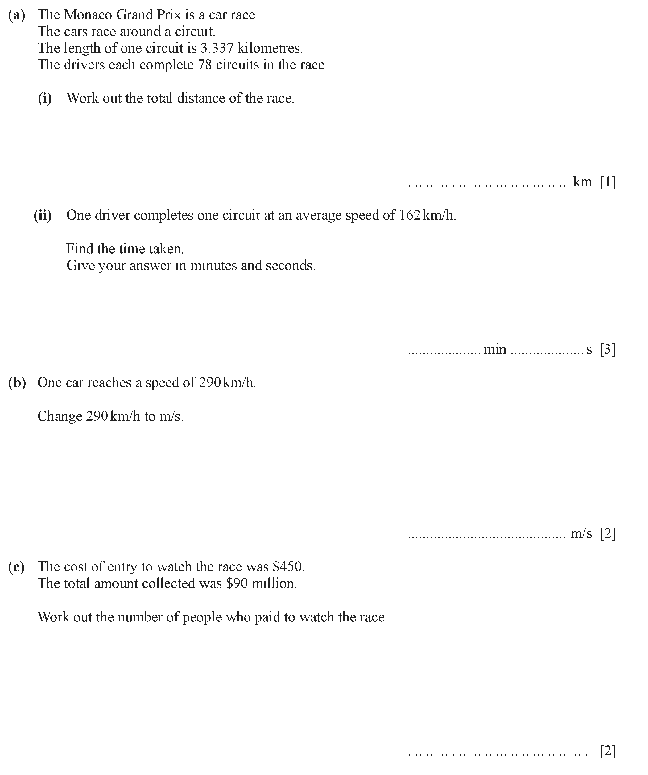 (a) Change 4.3 metres into millimetres. ................................. mm [1] (b) Change 60 hours into days. .................................. ...