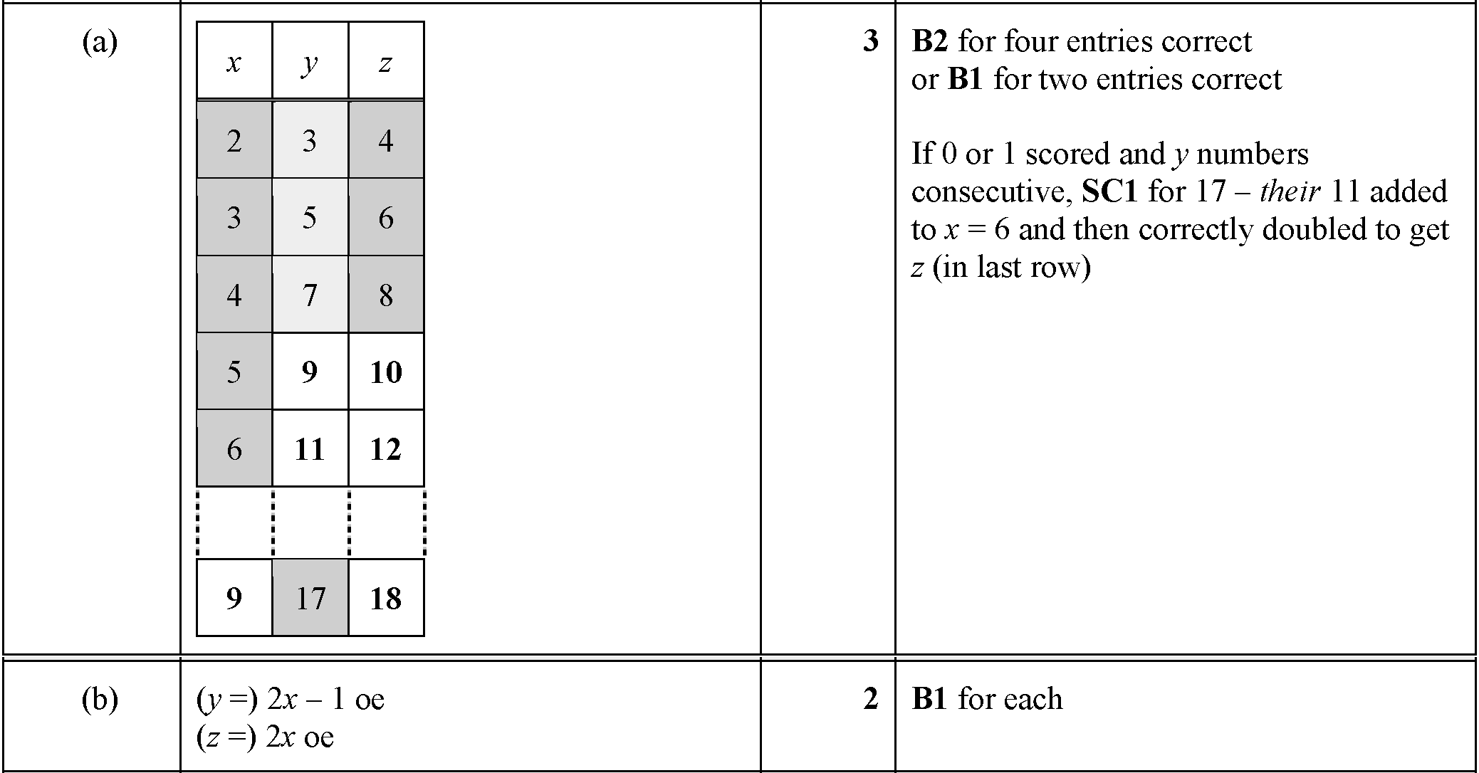 In this question $x$, $y$ and $z$ are consecutive. For example 15, 16 and 17.(a) Complete the table.xyz1516171220 [1](b) Write $y$ and $z$ in terms of...