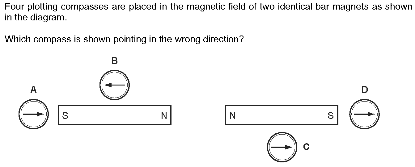 Fig. 7.1 shows a compass needle that has come to rest in the Earth's magnetic field.(a) On Fig. 7.1, draw an arrow pointing towards the north pole of ...