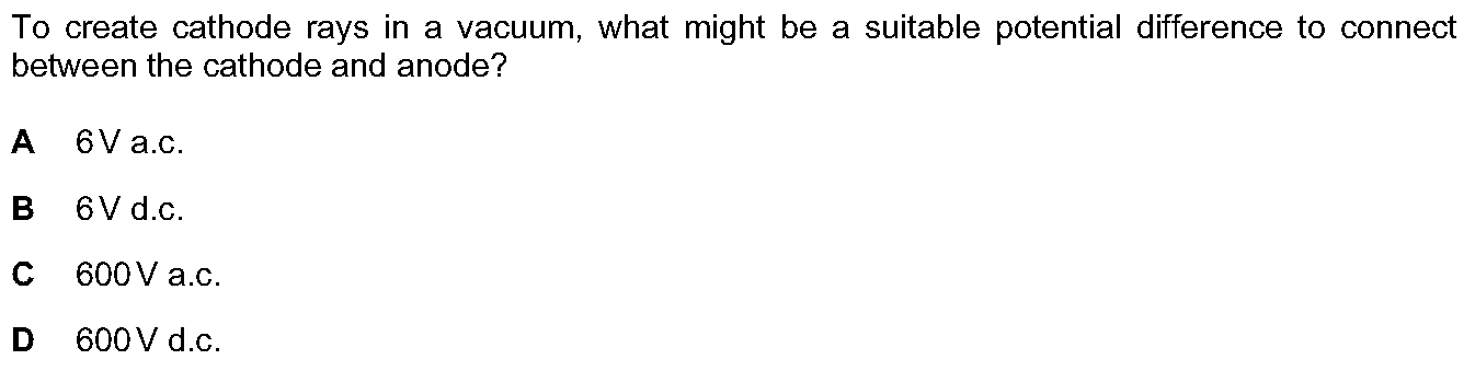 Fig. 12.1 shows parts of a tube in which cathode rays are produced.(a) What occupies the remaining space within the tube? Tick one box.air [ ]hydrogen...
