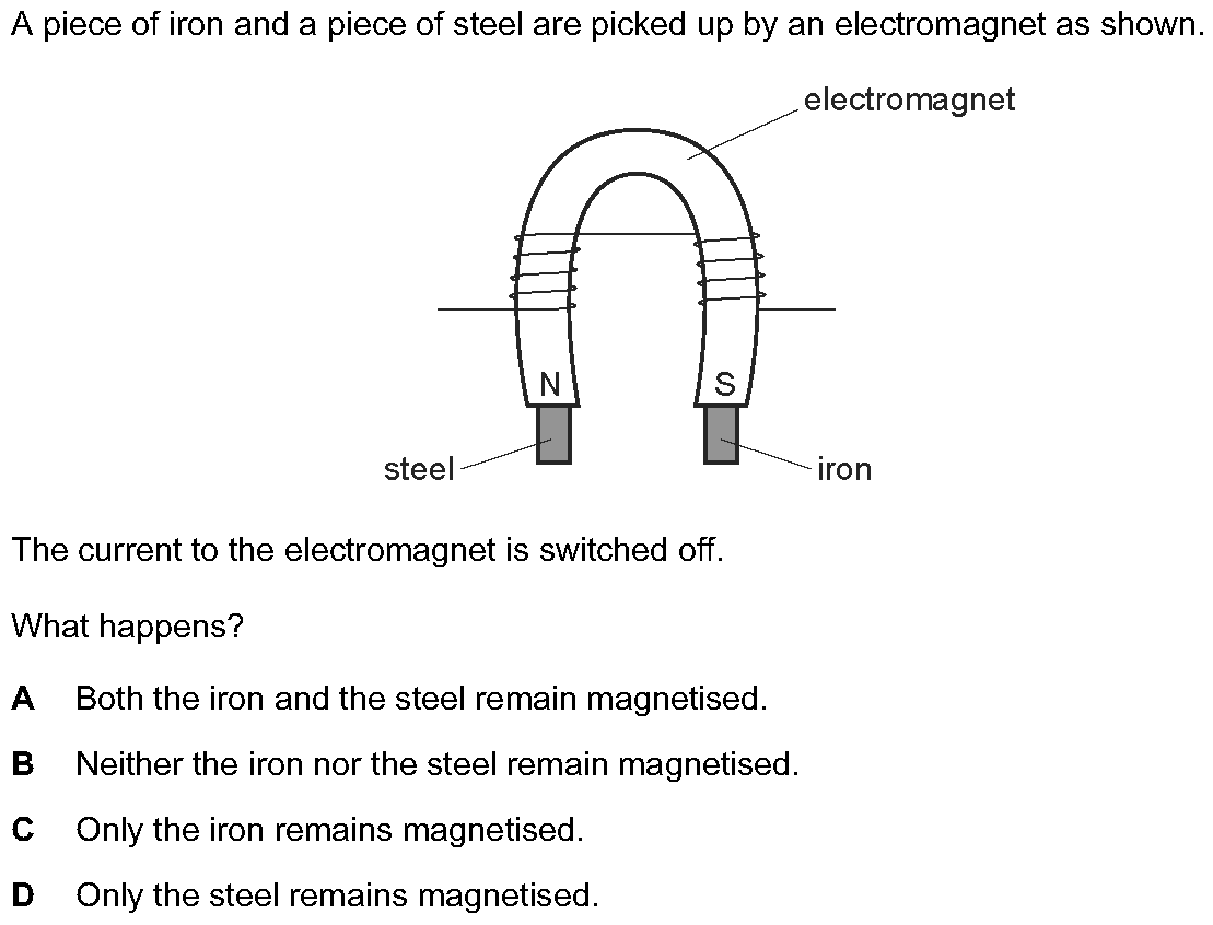The pivoted steel arrow from a small compass has become demagnetised. The coil shown in Fig. 7.1 is to be used to magnetise it again. (a) Describe ca...