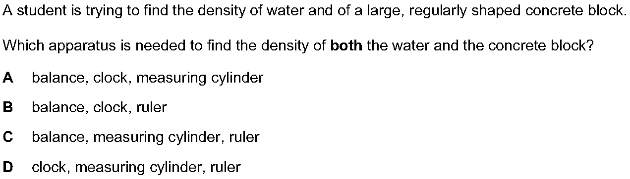 A student carries out an experiment to find the density of water, using a method that is slightly different from normal. In his method, he starts with...
