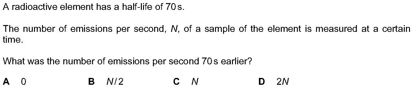 (a) Complete the following definition of radioactive half-life.The half-life of a radioactive substance is the time taken for ...........................