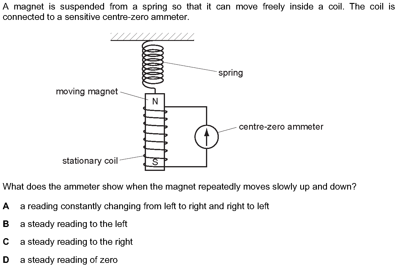 The pivoted steel arrow from a small compass has become demagnetised. The coil shown in Fig. 7.1 is to be used to magnetise it again. (a) Describe ca...