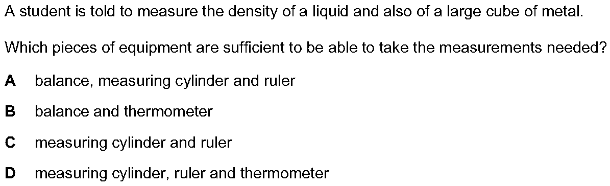 A student carries out an experiment to find the density of water, using a method that is slightly different from normal. In his method, he starts with...