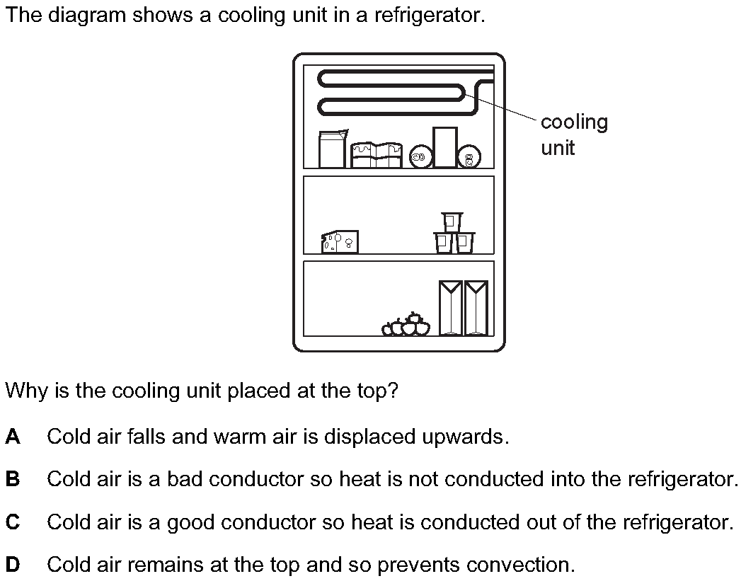 The main parts of a cold store are shown in Fig. 4.1. (a) Explain why the cooling tubes are positioned at the top of the store. [1](b) Suggest why the...