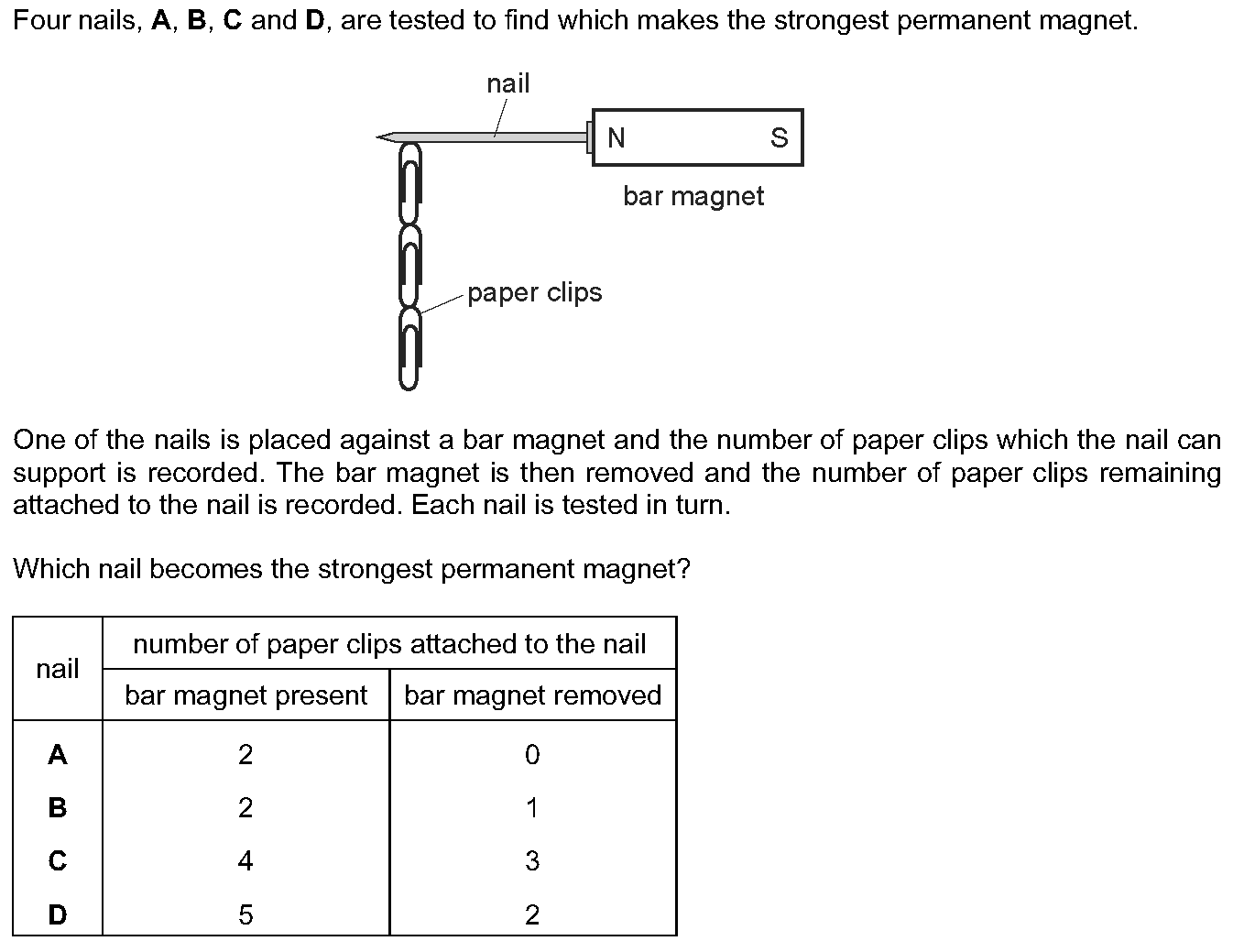 The pivoted steel arrow from a small compass has become demagnetised. The coil shown in Fig. 7.1 is to be used to magnetise it again. (a) Describe ca...