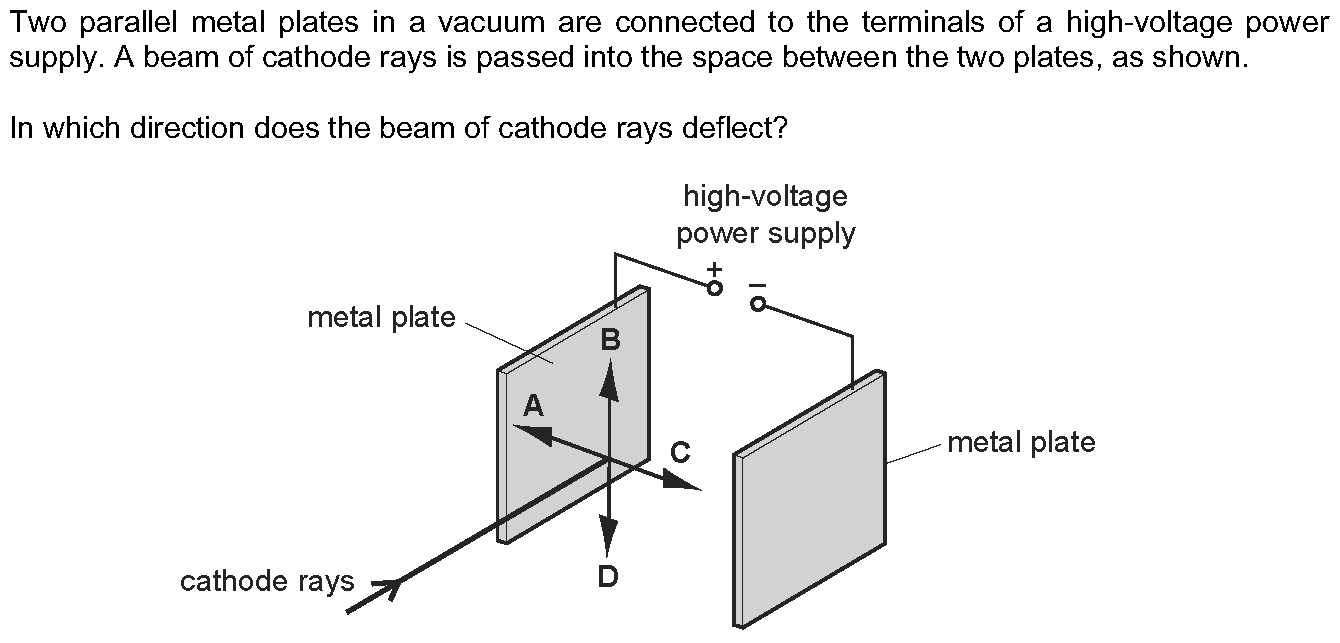 Fig. 11.1 shows an electron beam about to enter, at point A, the electric field between two charged metal plates.![Fig. 11.1](attachment://electron_be...