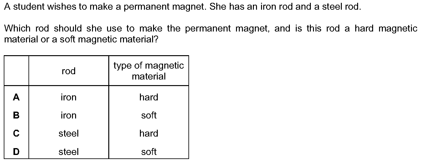 The pivoted steel arrow from a small compass has become demagnetised. The coil shown in Fig. 7.1 is to be used to magnetise it again. (a) Describe ca...