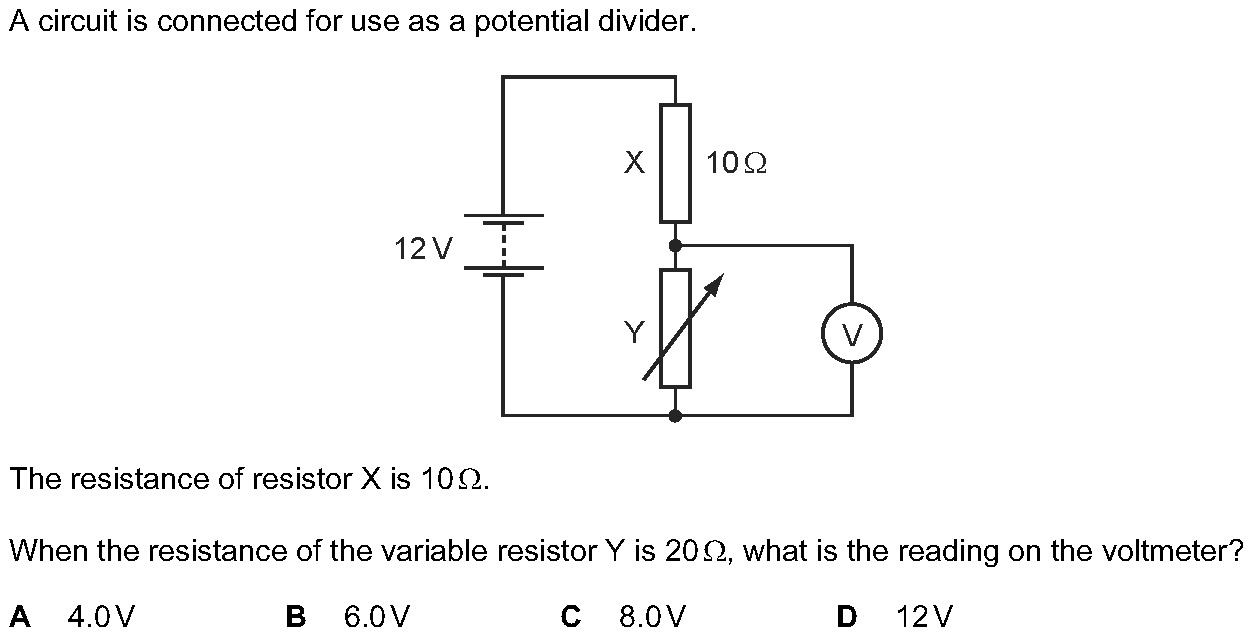 Fig. 8.1 shows two resistors forming part of a circuit.(a) (i) Complete the following sentence about the two resistors connected between A and D.The t...