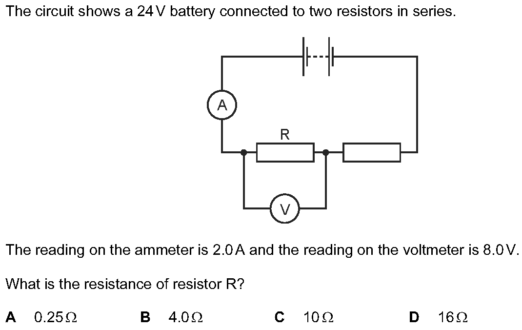 Fig. 8.1 shows two resistors forming part of a circuit.(a) (i) Complete the following sentence about the two resistors connected between A and D.The t...