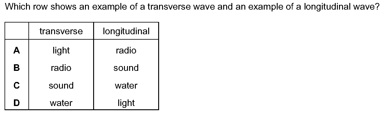 (a) The four words below can each be used to describe waves.Put a tick in each of the boxes alongside any words that can be applied to sound waves.lon...