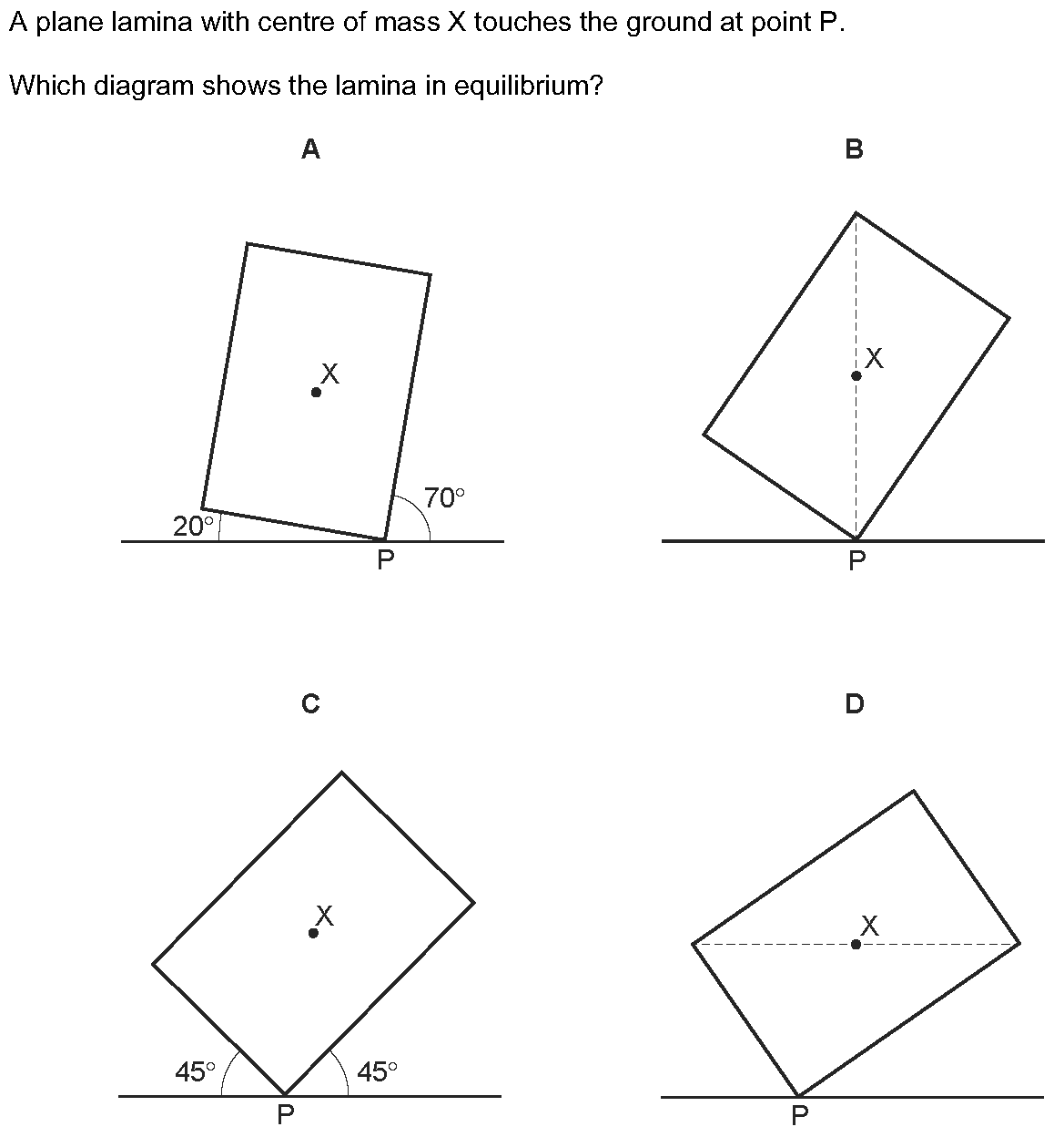(a) In a laboratory experiment to find the centre of mass of a triangular piece of card, the card is suspended first from point A and then from point ...
