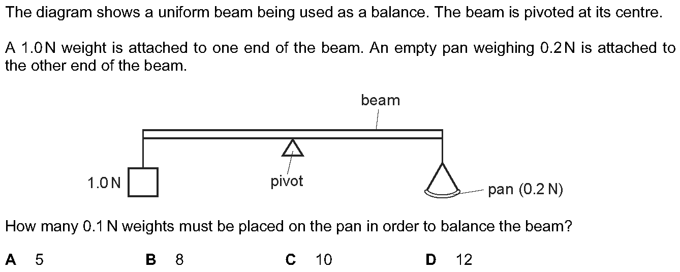 (a) The object illustrated in Fig. 4.1 is not in equilibrium. It has a weight of 12 N. (i) State what happens to the object..............................