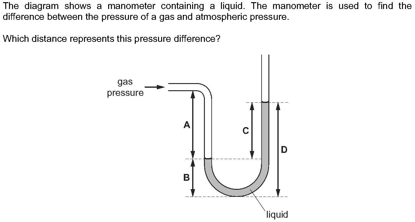 "The diagram shows a simple mercury barometer.Which height is used as a measurement of atmospheric pressure?"